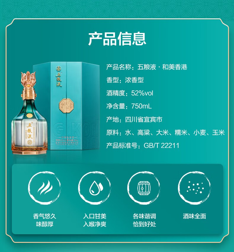 五粮液·和美系列·和美香港 52度 750mL*1瓶