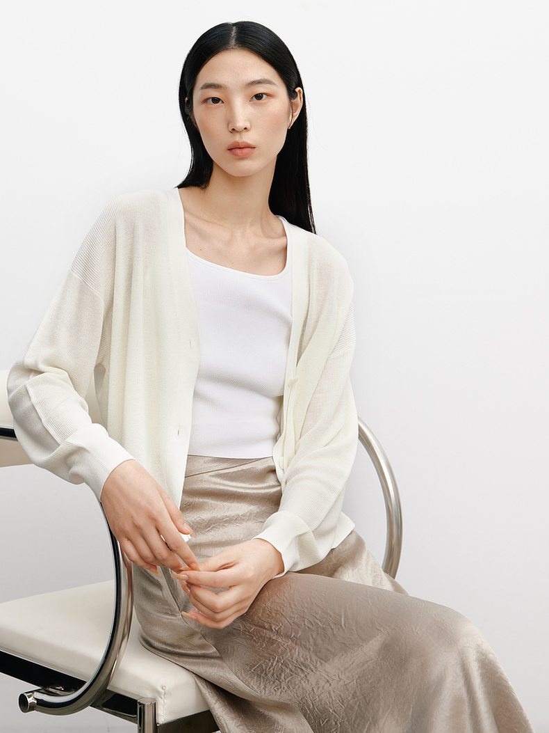 【积分换购不退货】【特惠不退货】诗凡黎v领针织开衫2024夏新款显瘦空调罩衫3F4230961