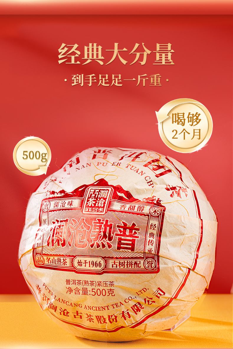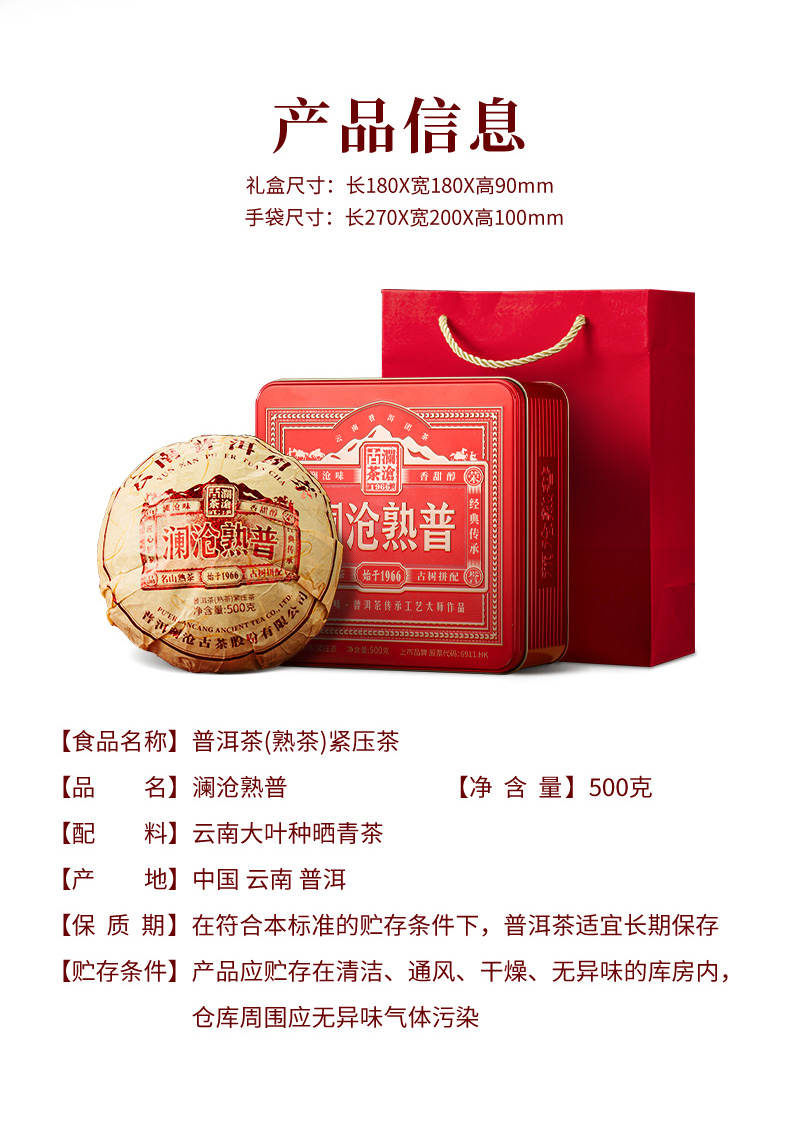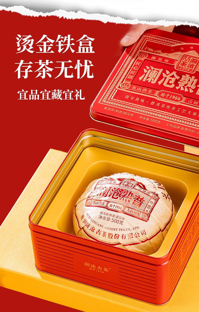 澜沧古茶2024年澜沧熟普普洱熟茶熟普茶云南瓜茶烫金铁盒装500g