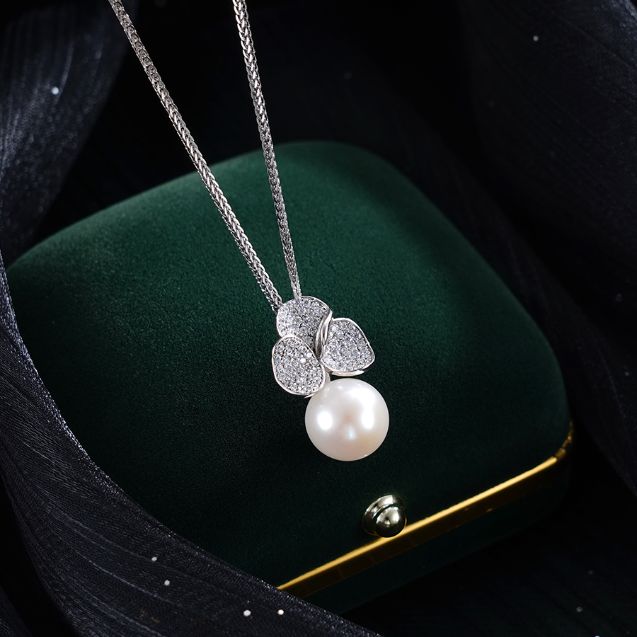 【寓意】:圆润珍珠暗藏古典美感,三叶花瓣微镶细闪锆石,佩戴时珠光随动作闪烁,方寸间凝缩生命律动。