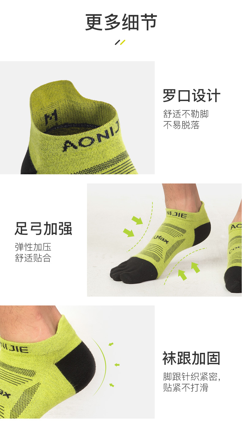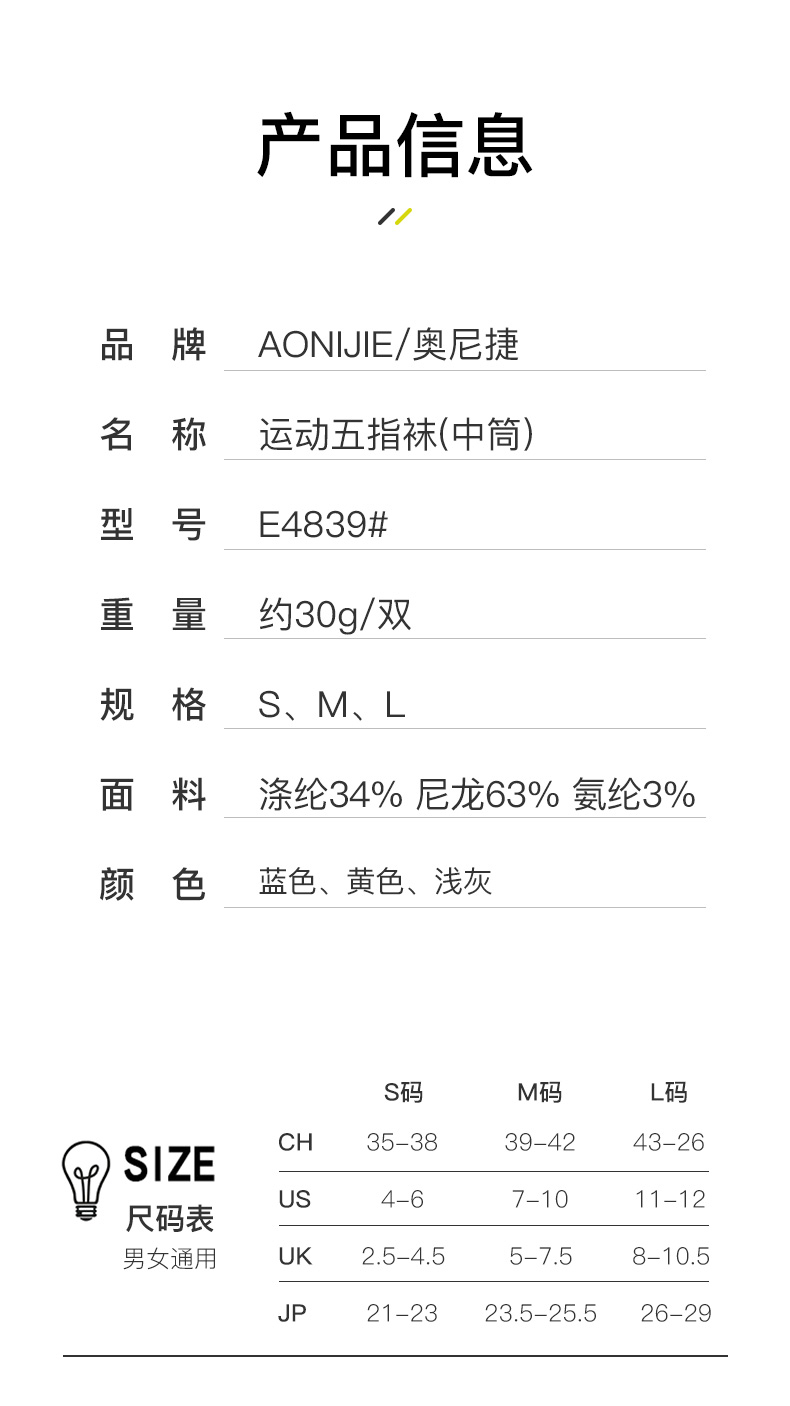 奥尼捷运动袜透气耐磨防滑户外登山越野跑步骑行五指袜3色混装