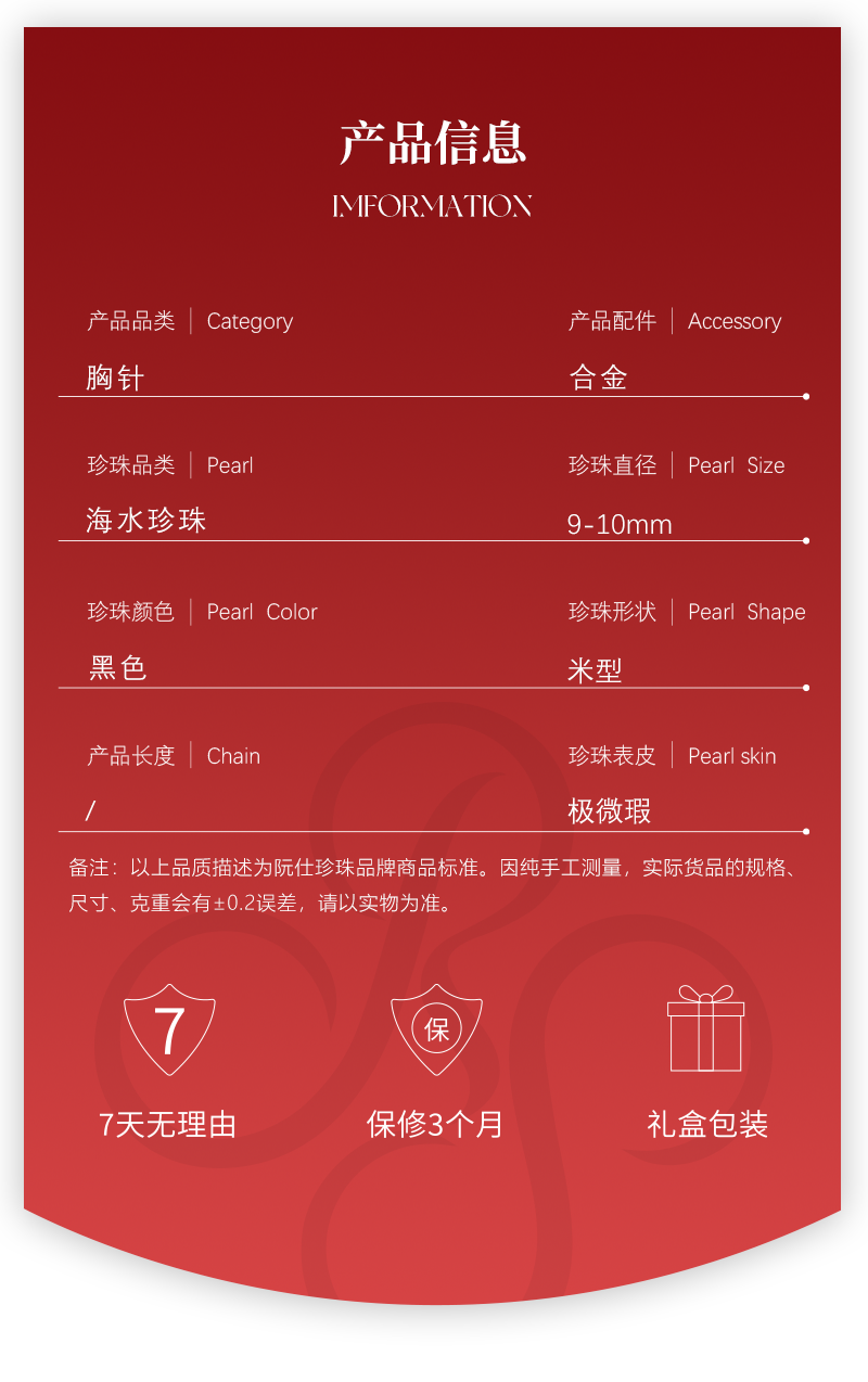 阮仕不染系列 合金大溪地黑珍珠胸针 9-10mm 米型