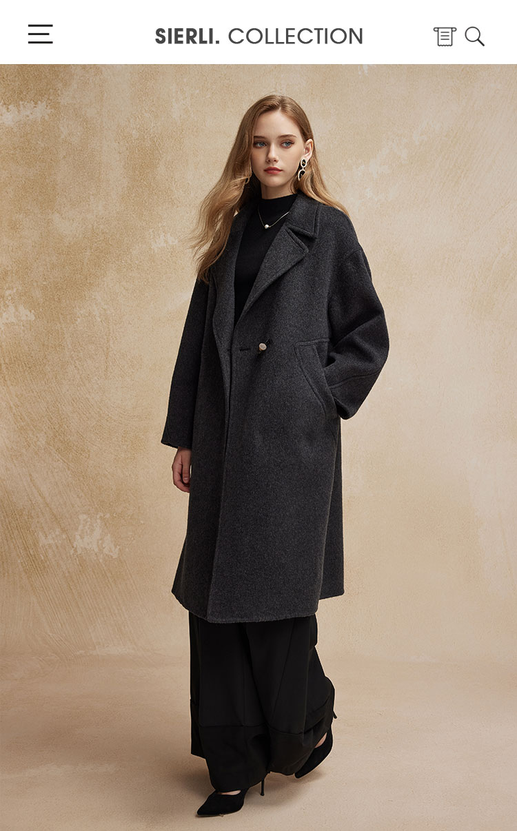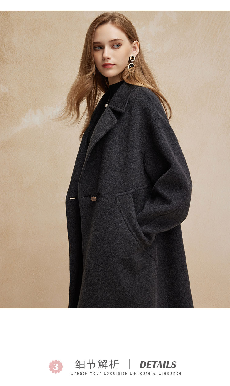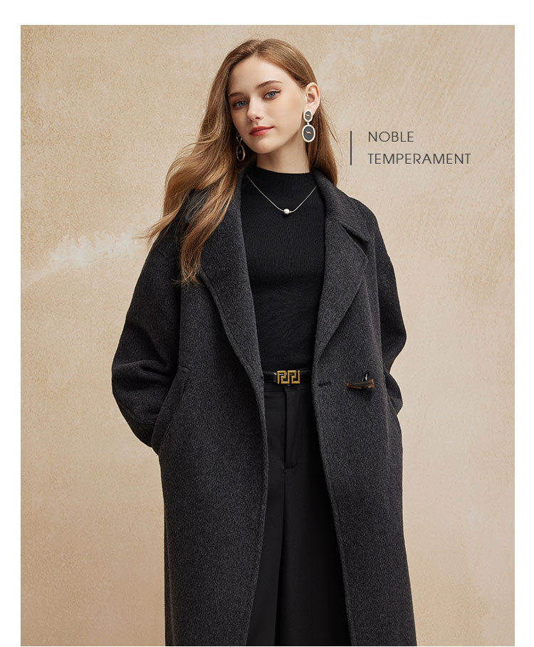 PH91924新款双面呢简约廓形时尚通勤长款羊毛大衣