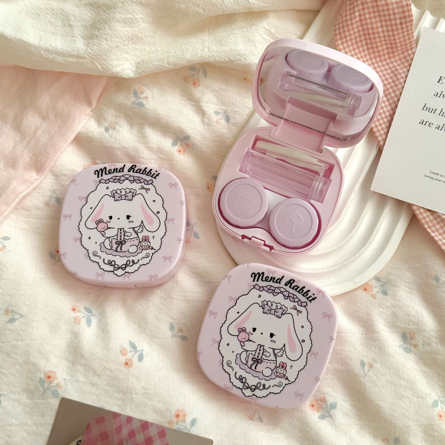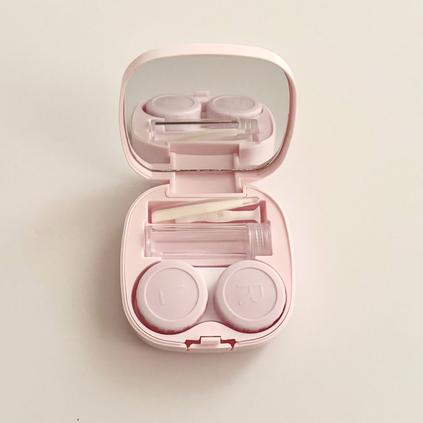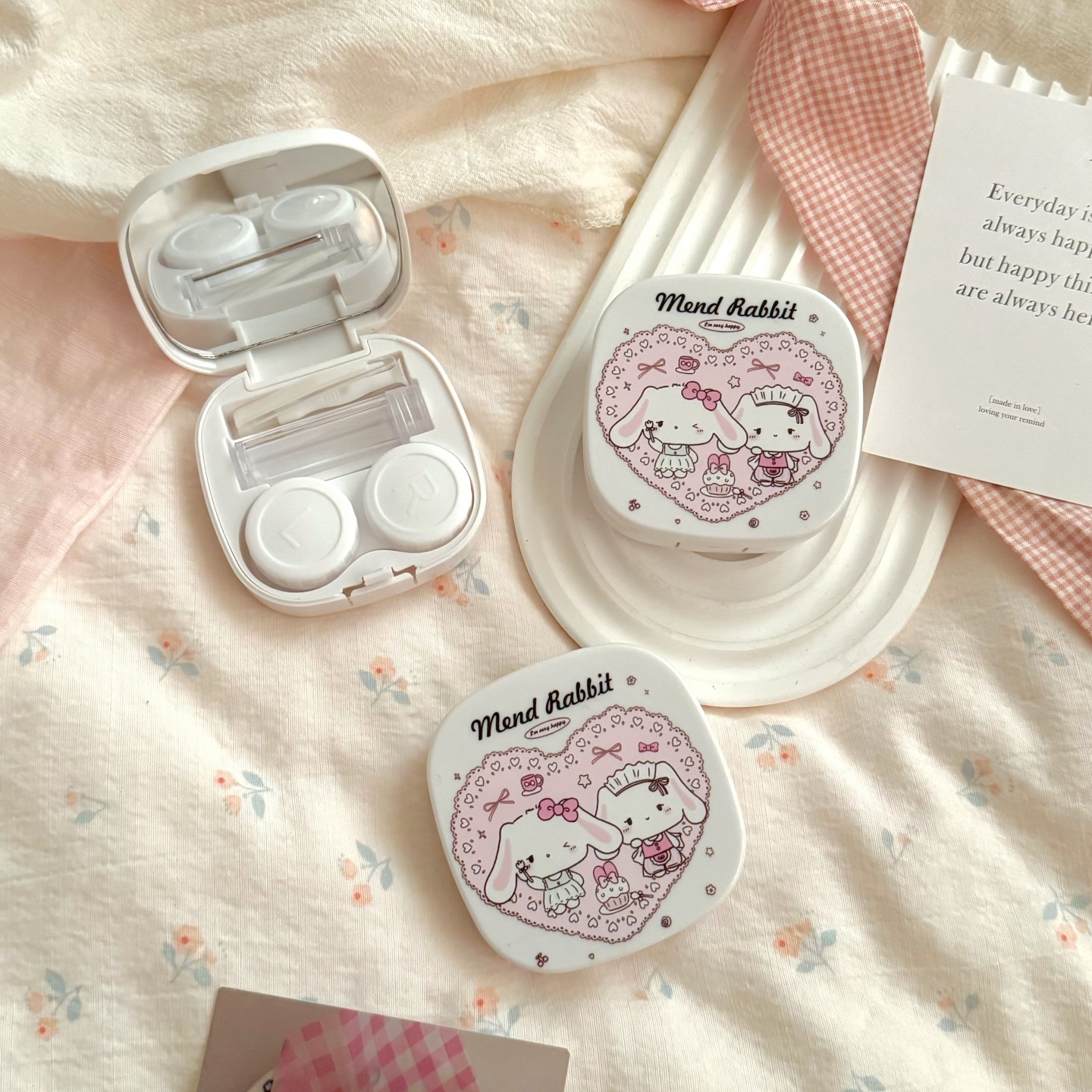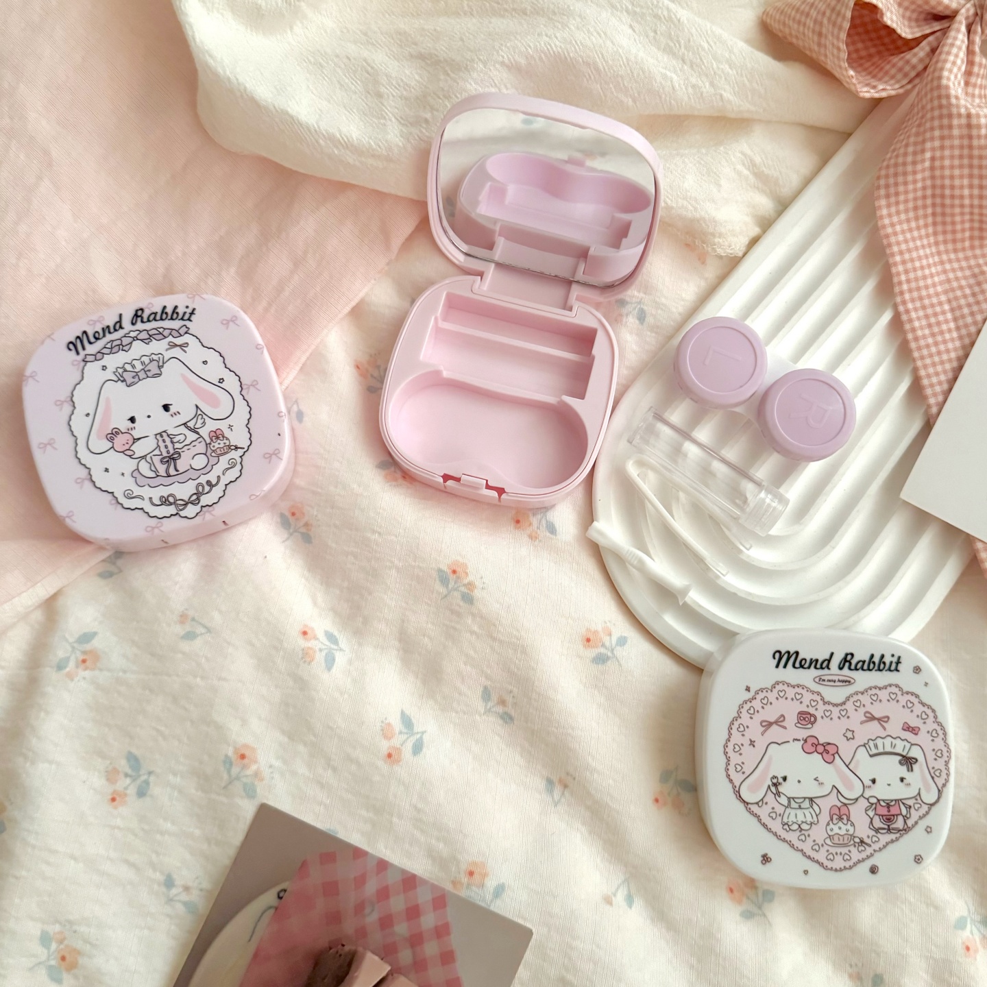 伴侣盒套装组成:双联盒、镊子、配戴棒、小瓶子、镜子。