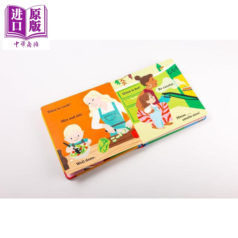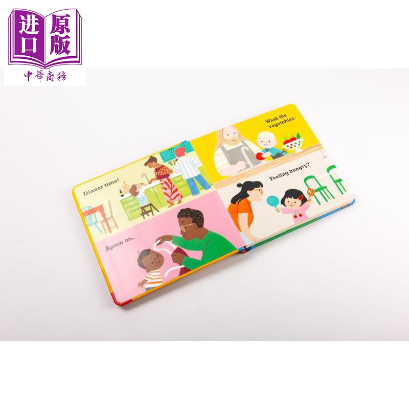 准备食物(“快好了!”),坐下来吃饭(“太烫了!”),把食物弄得乱七八糟(“哦,天哪!”),然后在用餐结束后收拾干净(“空碗!”)。