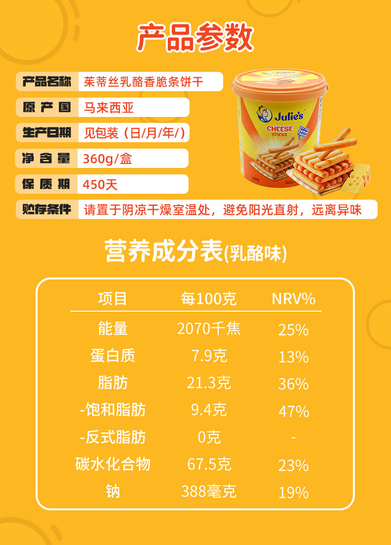 马来西亚茱蒂丝乳酪香脆条饼干360g/152461 让嘴巴上瘾的酥脆芝士味拇指饼干