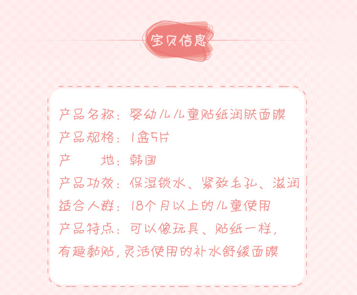 韩国 宫中秘策 面膜 婴幼儿儿童动物贴纸润肤面膜 宝宝面膜 5片装