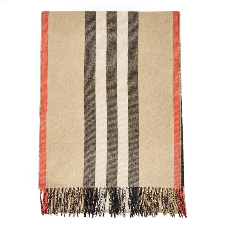 【现货秒发】BURBERRY/博柏利 男女中性流苏装饰山羊绒双面两用围巾 80187701