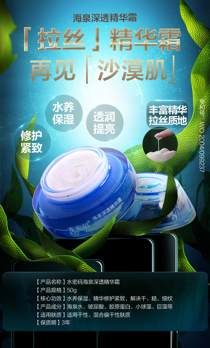 【一般贸易】【赵丽颖代言】水密码海泉深透精华霜补水保湿滋润霜深层滋养护肤懒人霜春夏50g