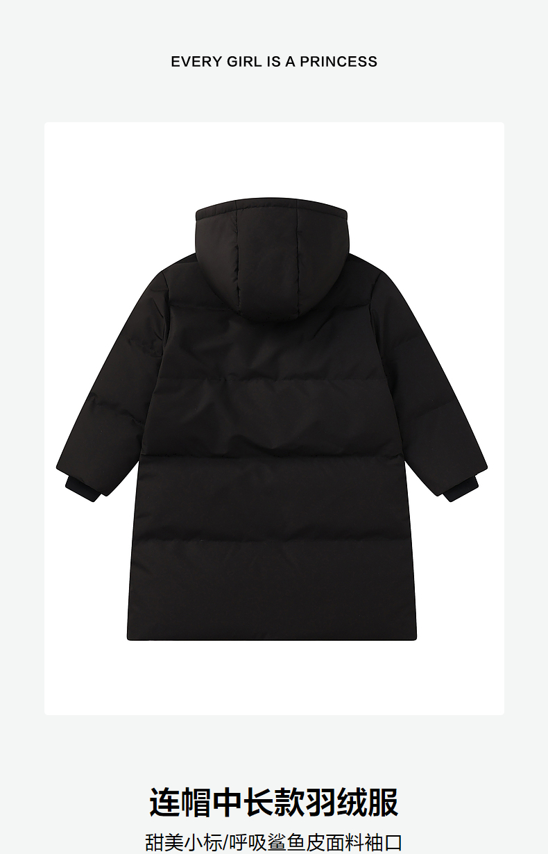 笛莎Deesha女童羽绒服2024冬季新款连帽中长款羽绒服