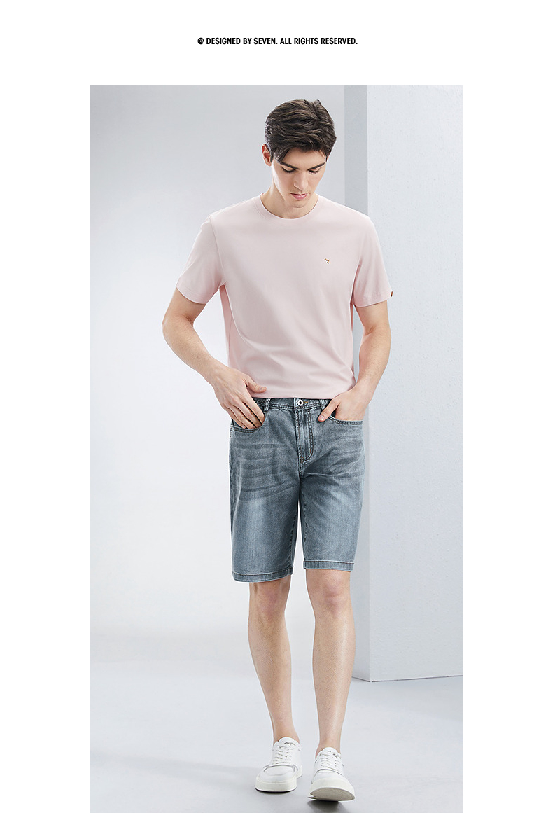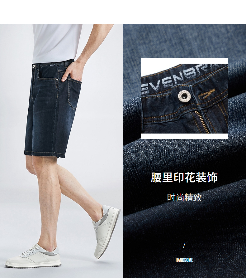 【特价含莱赛尔】柒牌直筒牛仔裤男夏季新款耐磨休闲水洗百搭牛仔短裤 126H70560