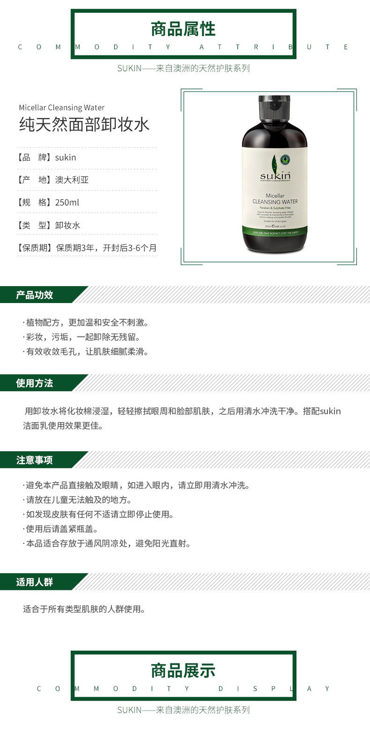 【保税仓】SUKIN/苏芊 天然面部卸妆水 Micellar Cleansing Water 250ml