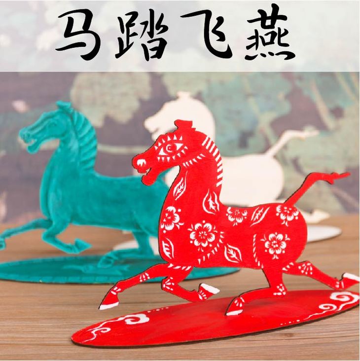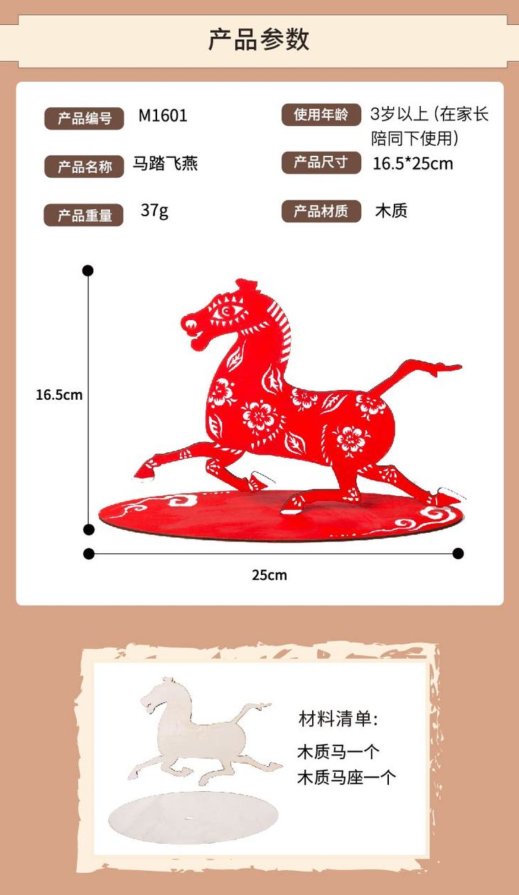 木质马踏飞燕 中国风特色手工材料幼儿园儿童创意绘画diy小马摆饰