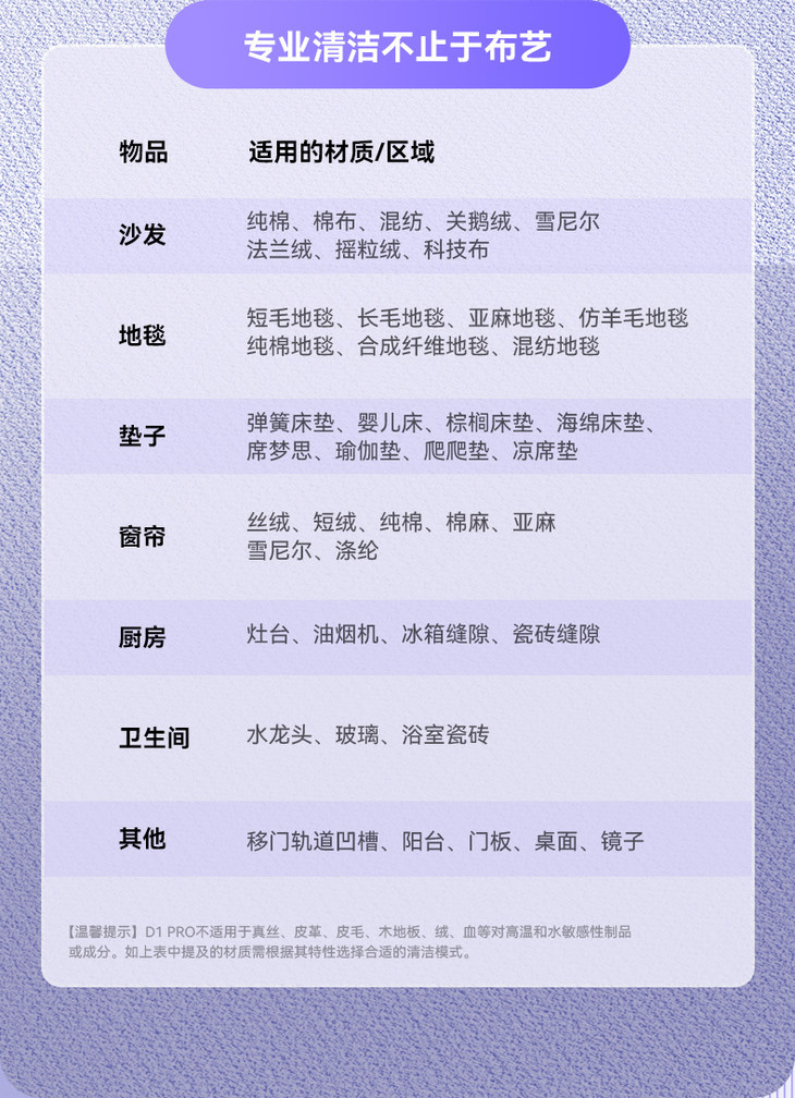 ✔️新弄脏的看得见的顽渍,比如小孩意外弄翻咖啡、果汁这种轻度污渍,可以用40℃低温清洁。 ✔️想要追求更强的清洁效果,60℃高温清洁模式就更合适! 例如沙发、床垫久用泛黄的这种顽固污渍,都是小意思。 而且热水温度>55℃还能有效除螨,去污除螨一举两得! 加入配套的清洁剂使用,可以更好发挥清洁效果哦~ *清洁液只能用与机器同品牌的,使用其它品牌会影响机器使用寿命。