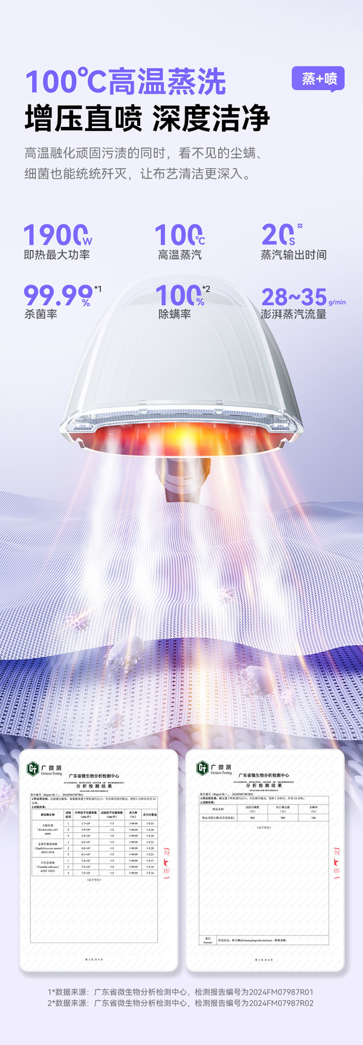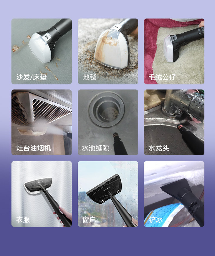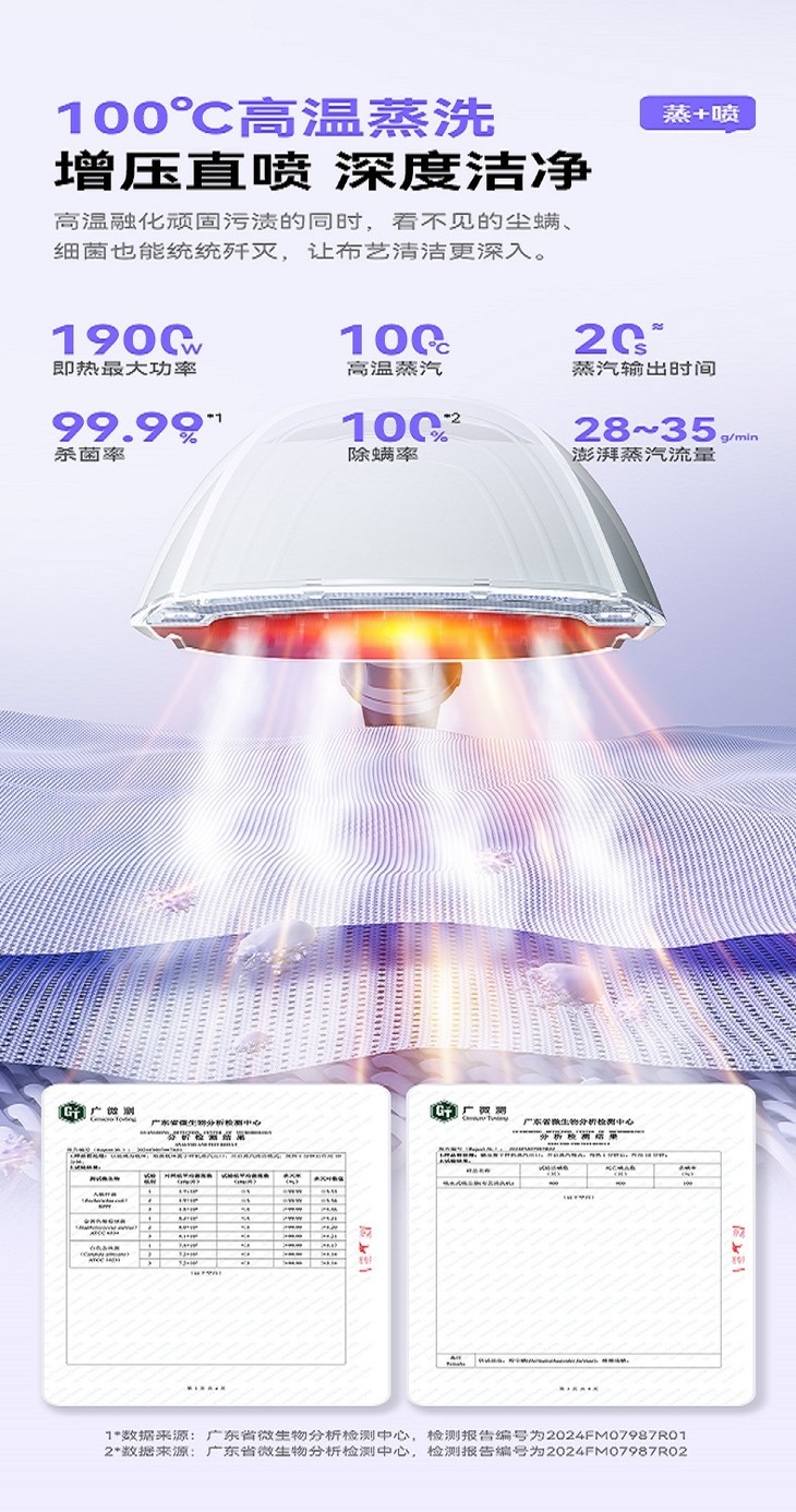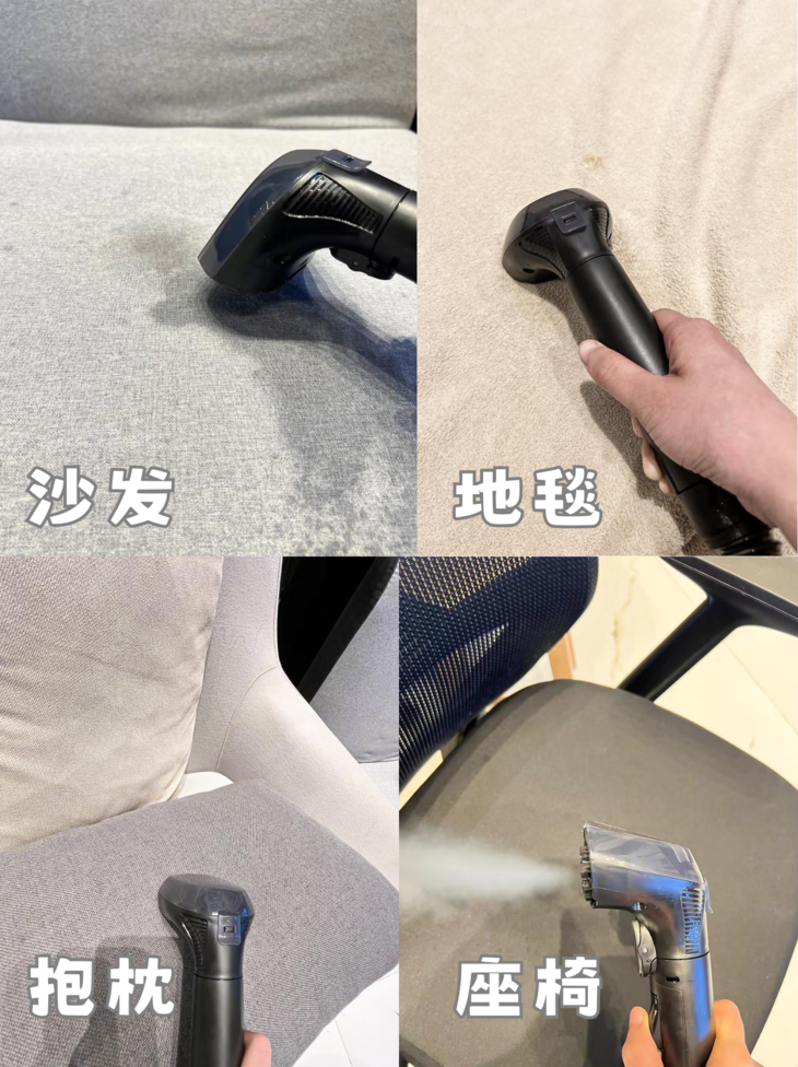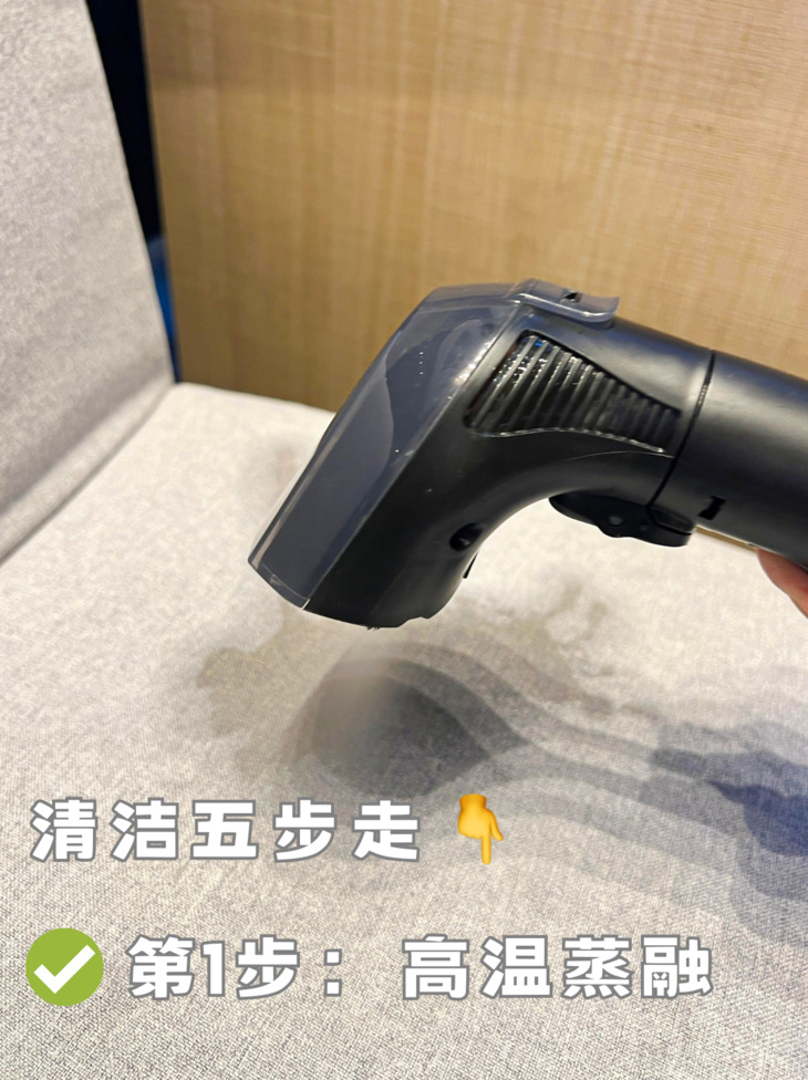 ✔️蒸汽杀菌,除菌率99% 除螨率100% 有研究发现,沙发上平均每克尘土中就含有115只螨虫; 地毯上平均每克尘土中含有39.8只螨虫! 孩子的毛绒玩具,10天后菌落数还达到 20000 以上! 这对于有娃有宠的家庭来说,真的是危机重重! 为了孩子和家人的健康,是时候把布艺深层清洁重视起来啦! 针对看不见的脏污,像脏污不明显的布艺,选择蒸汽清洁可以有效杀菌除螨。 如果是对抱枕/衣物/床垫这种经常接触的布艺进行日常消毒,用蒸汽杀菌模式就很方便! 通过100℃高温蒸汽均匀喷射,有效杀灭潜藏在织物里的细菌和螨虫,实现真正洁净!