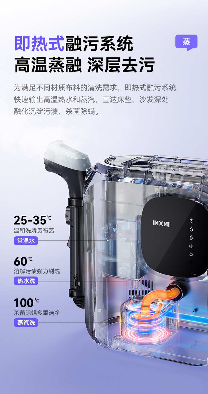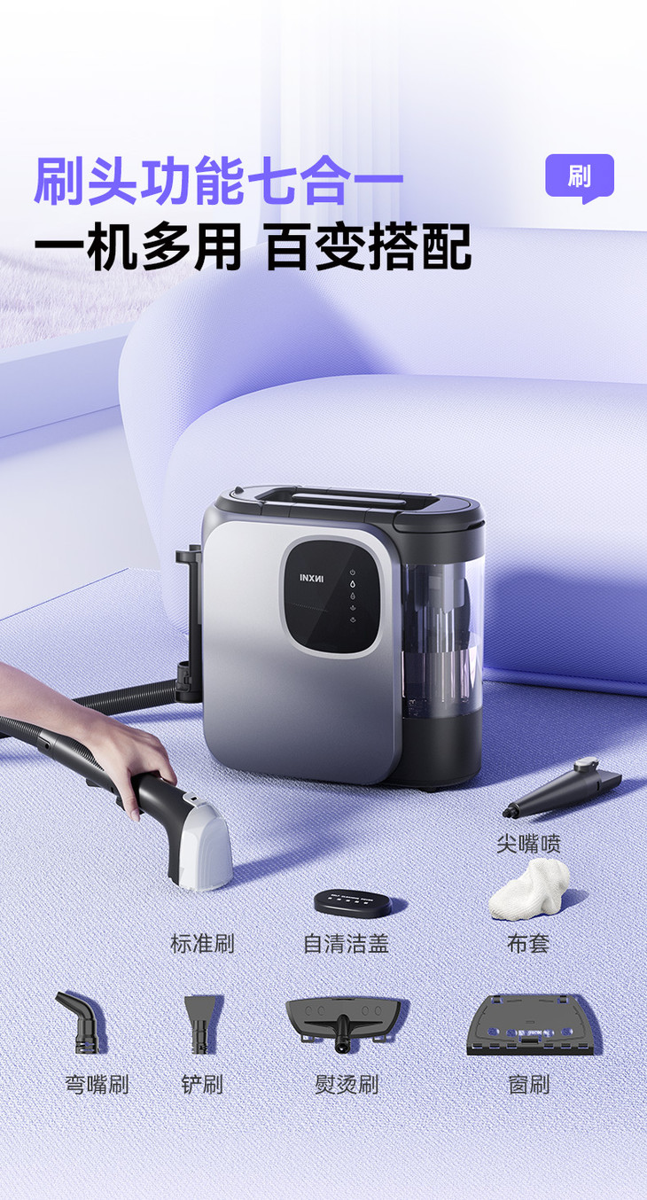 🔥告别漫长晾晒 『INXNI以内七合一体多功能布艺清洁机D1 Pro』🌿搭配7种刷头,4种清洁模式🌿支持管道免拆洗自清洁,智能安全控温保护,语音提醒,智能触控