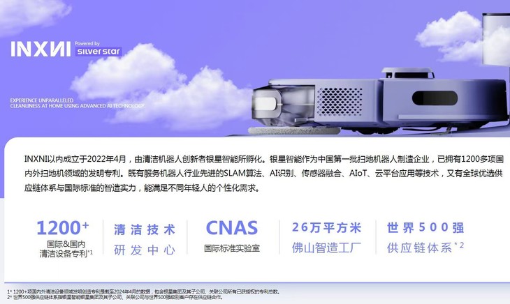 清洁家电品牌 “以内 INXNI”! ▸坐下超级智能产业园区多达26万平方米,年产能达1800万台,总投资金额达20个亿! ▸拥有19年扫地机器人生产研发经验的银星集团,全球出口外贸量第一! 👍💥罗永浩、李佳琦、辛选等众多网红达人推荐爆品~某米、某头、某浦,某G,某博等很多品牌都出自这里代工 INXNI以内是AI智能清洁机器人的引领者,荣获年底潜力消费品牌,年度品牌奖星球奖! 在各大明星直播间被强力推荐,成为各大直播间的爆款之选! 是一个真正做到有口皆碑,好品如潮的品牌之一!