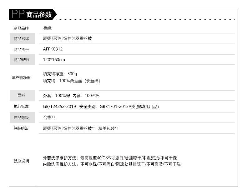 鑫缘 爱婴系列可水洗纯蚕丝被 AFPJ0209