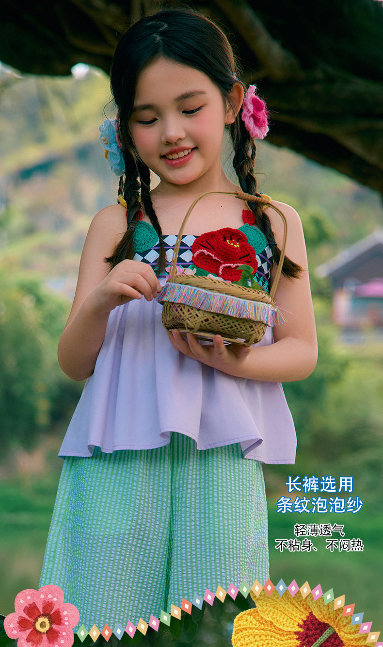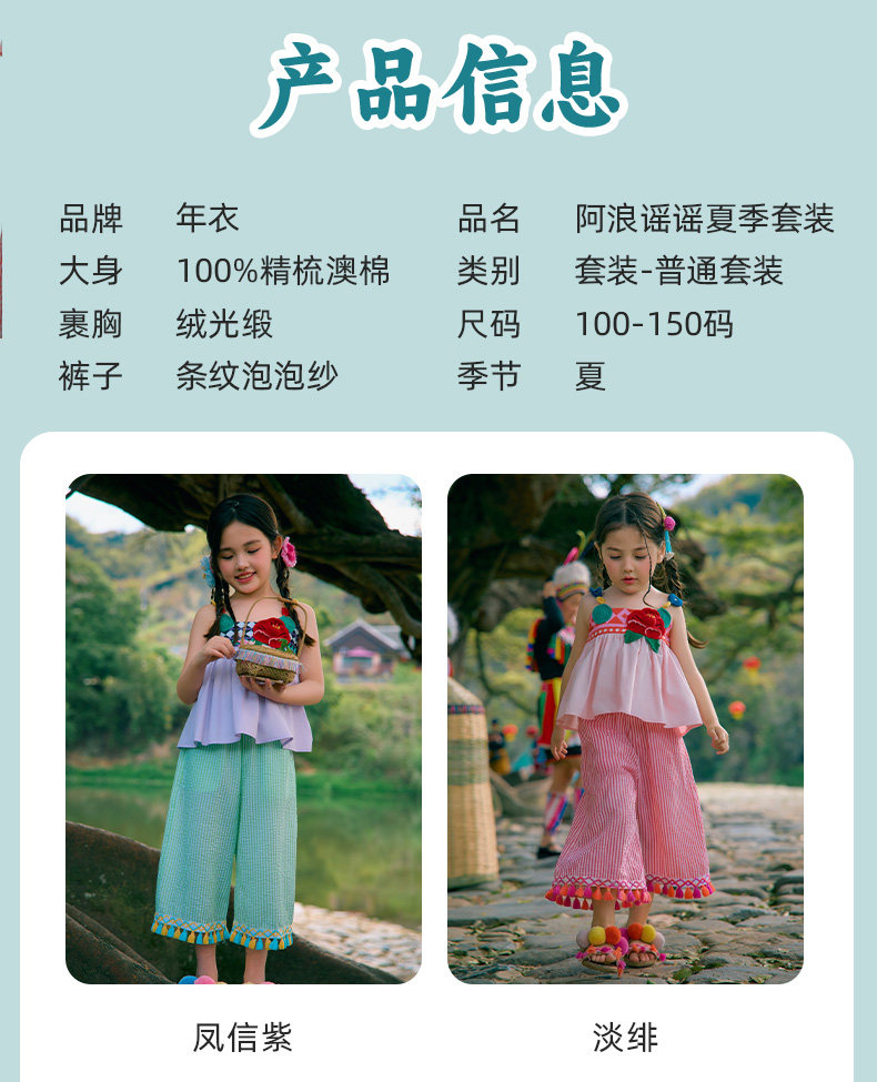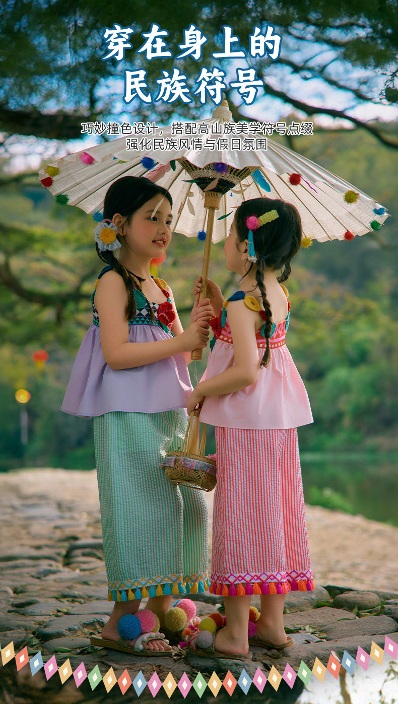 年衣童装儿童套装女童2026年新款夏装民族风女孩吊带上衣长裤套装