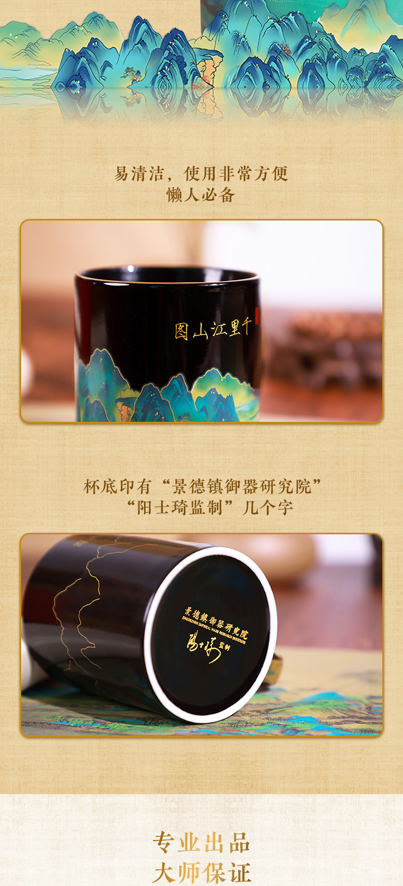 【景德镇御器研究院出品】《千里江山图》感温变色杯【228-1】