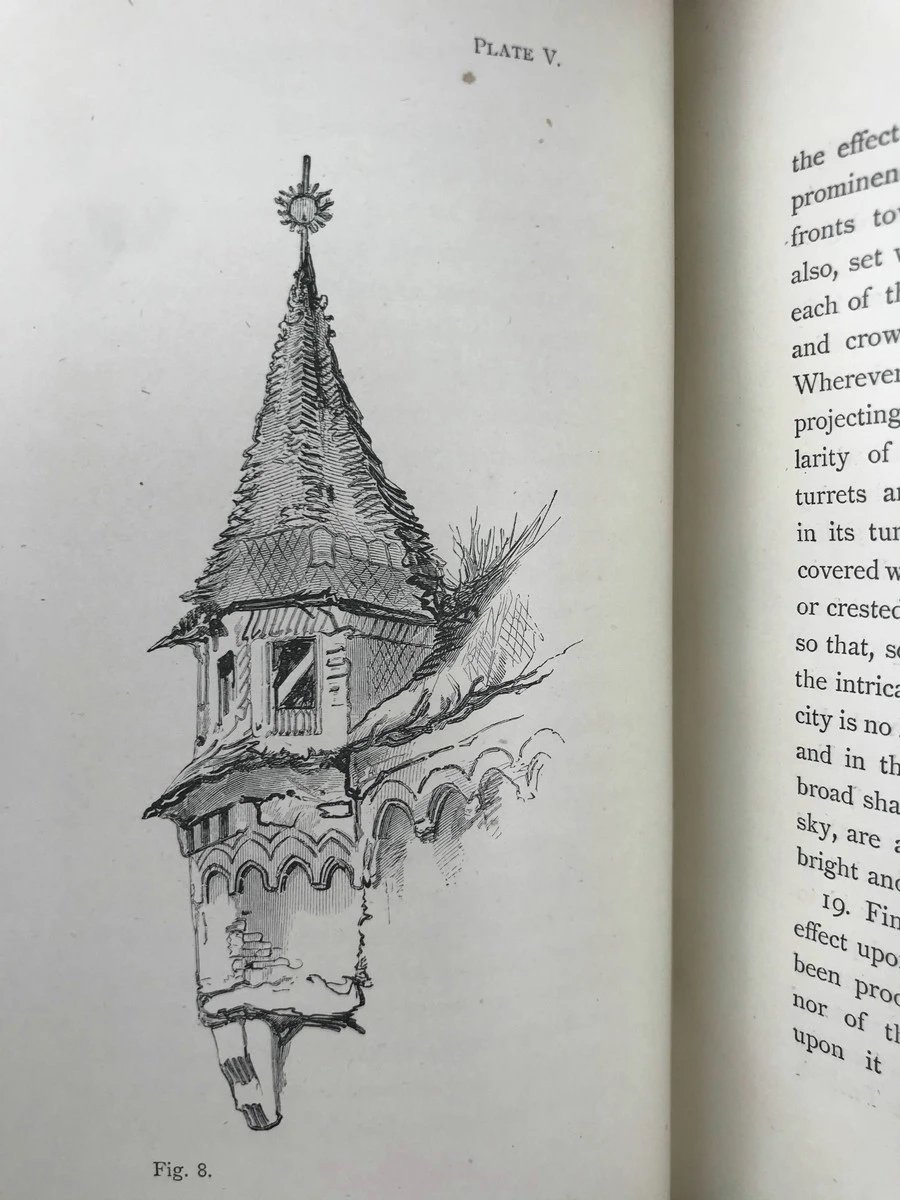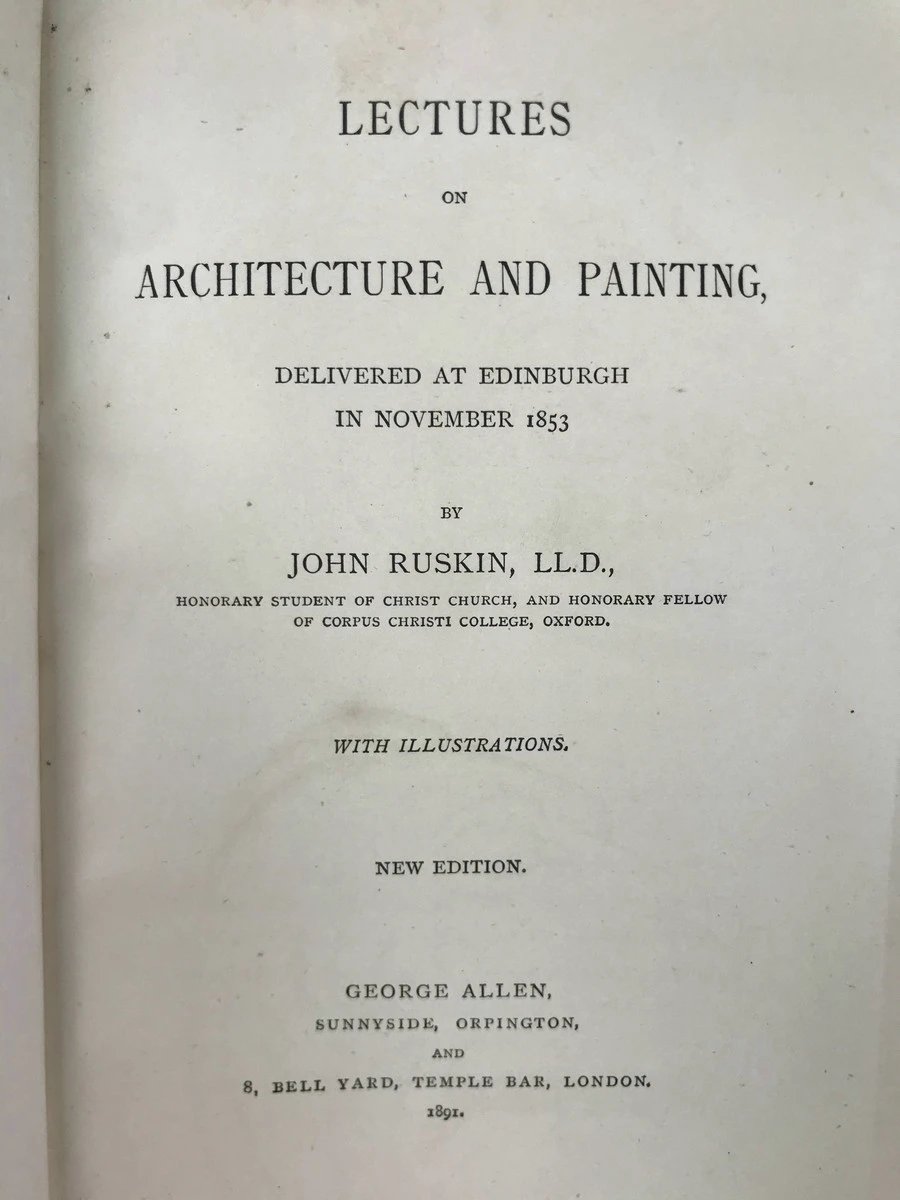 1891年 罗斯金建筑与艺术演讲集 15页插图 真皮精装32开