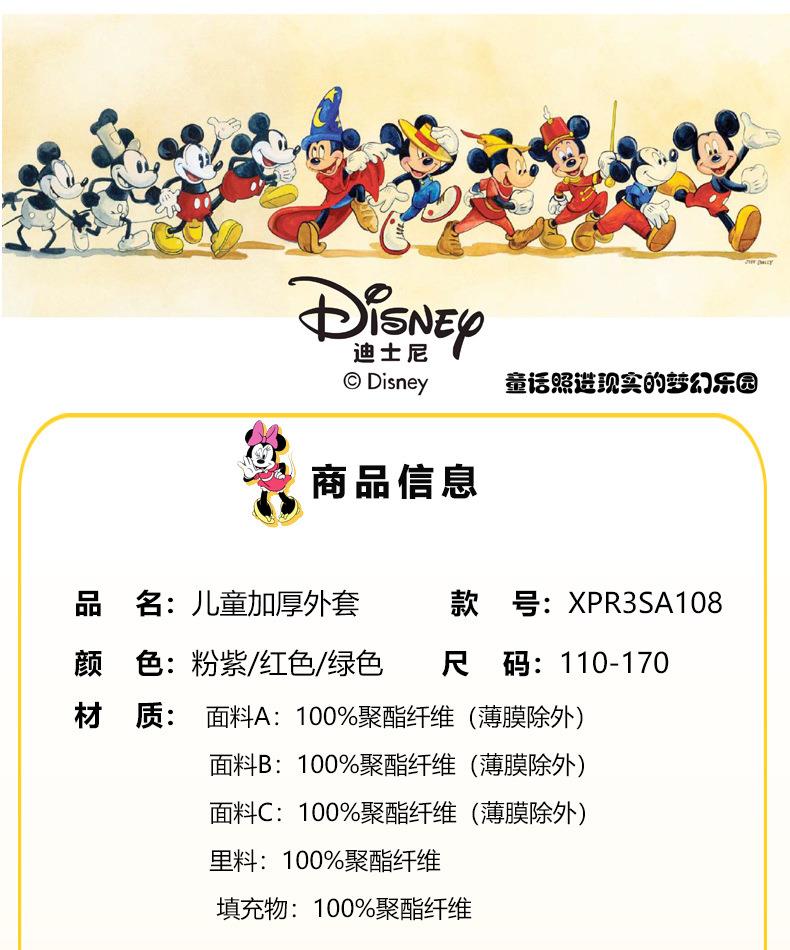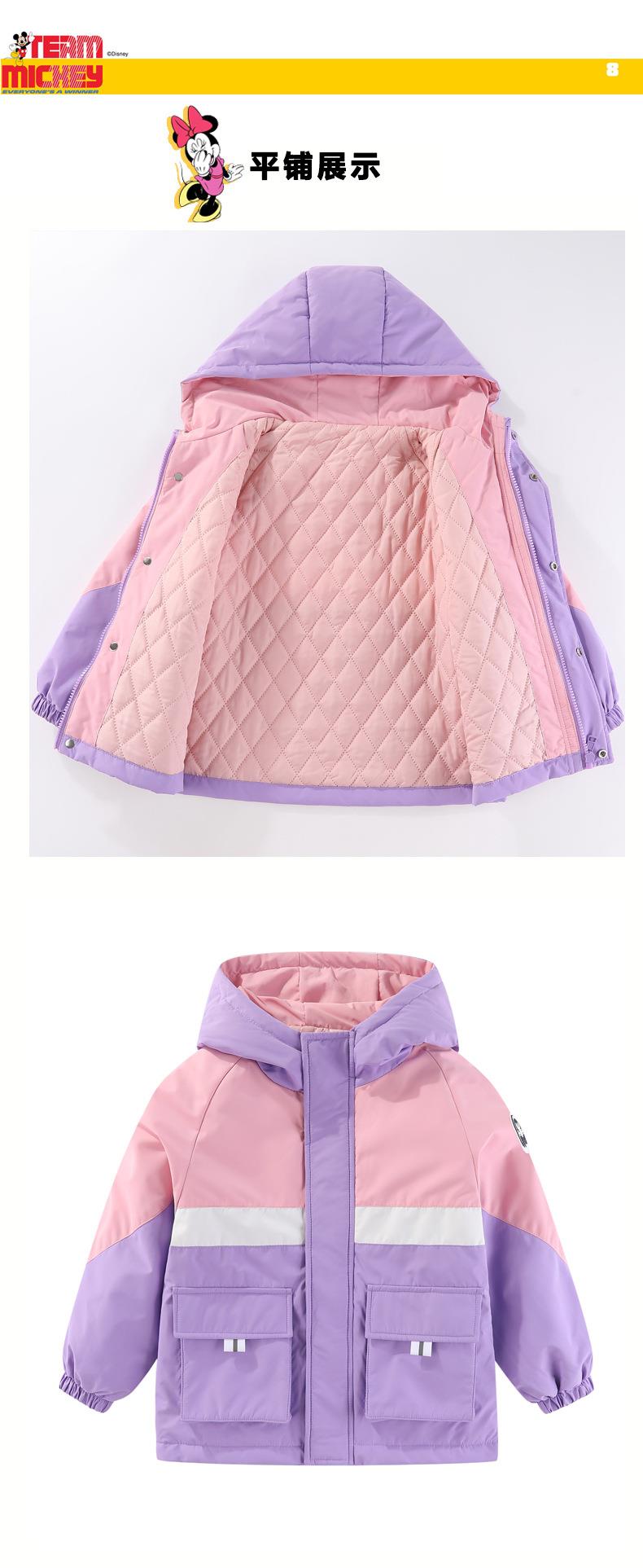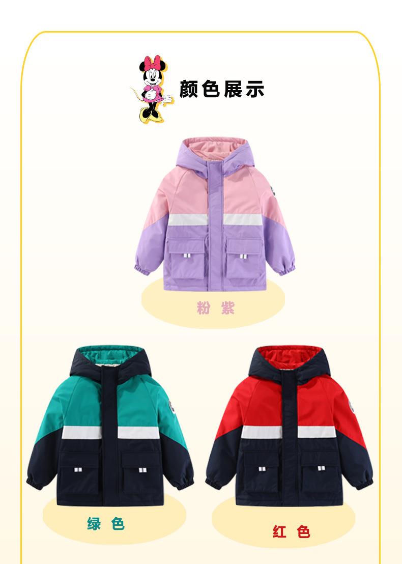 迪士尼儿童户外冲锋衣中大童亲子款加厚连帽夹棉外套三合一外套