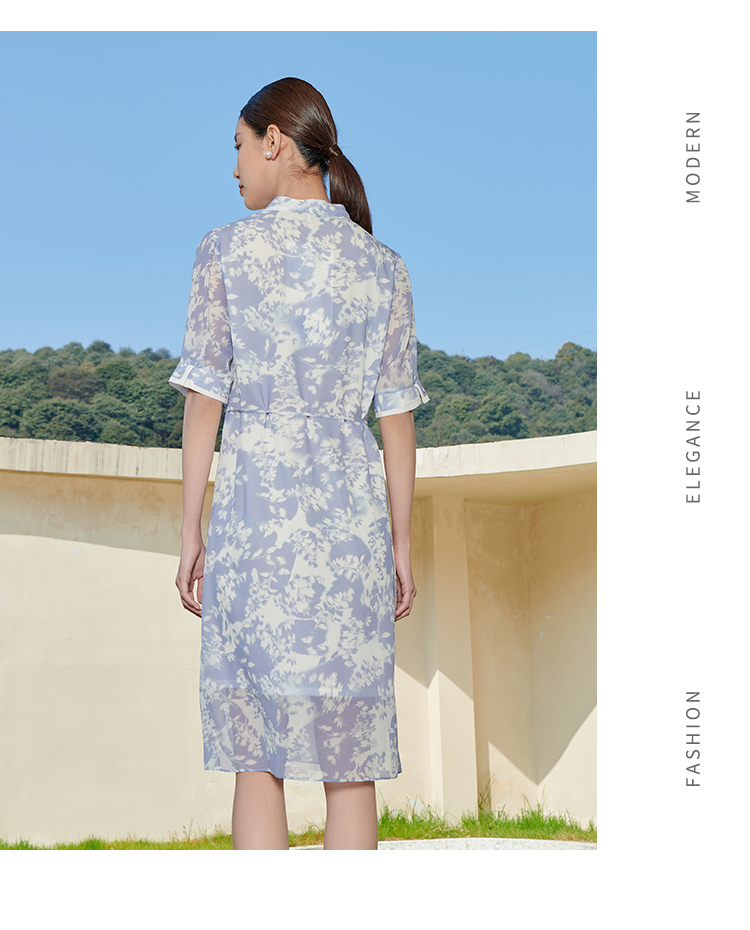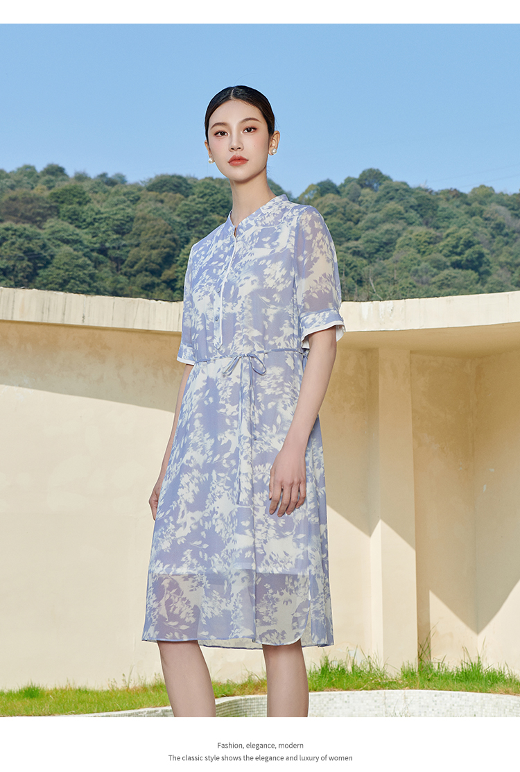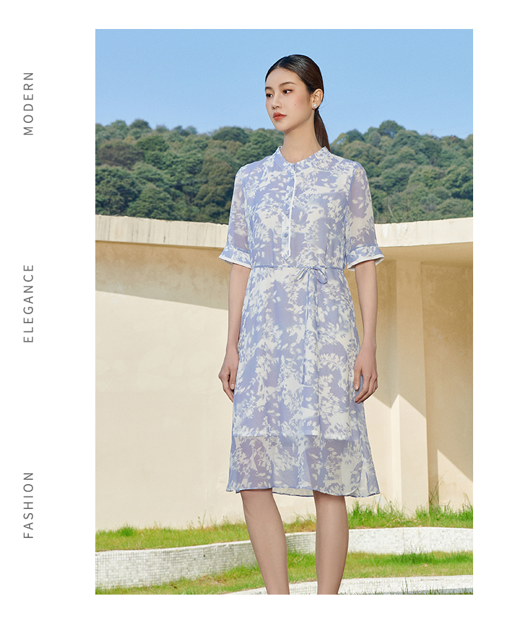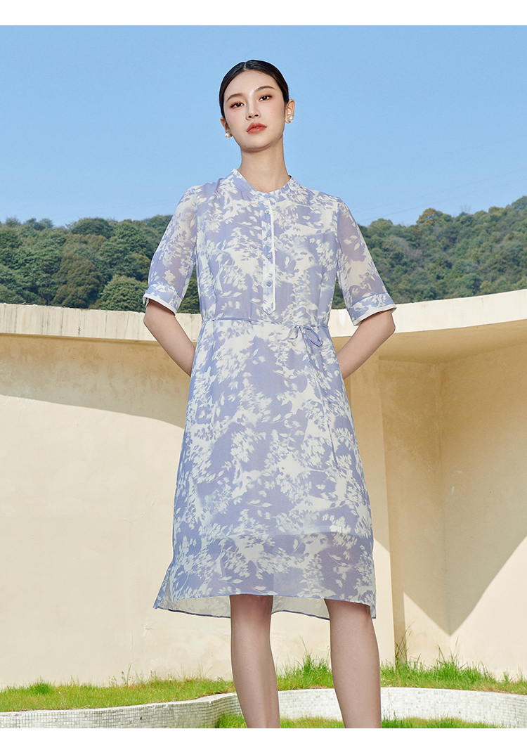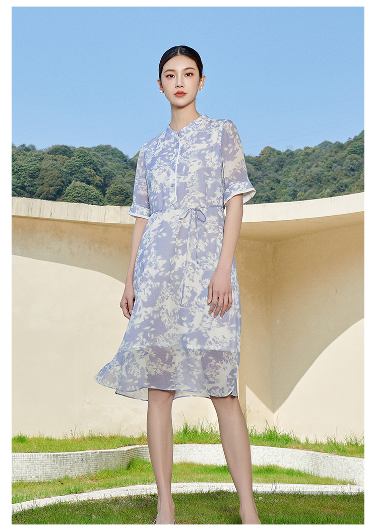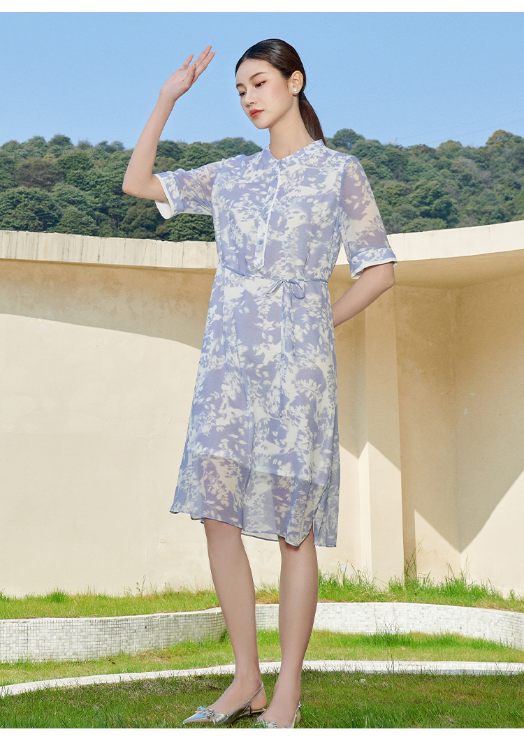 佐尔美夏季新款 气质甜美小碎花100%桑蚕丝中袖连衣裙女M42LS30