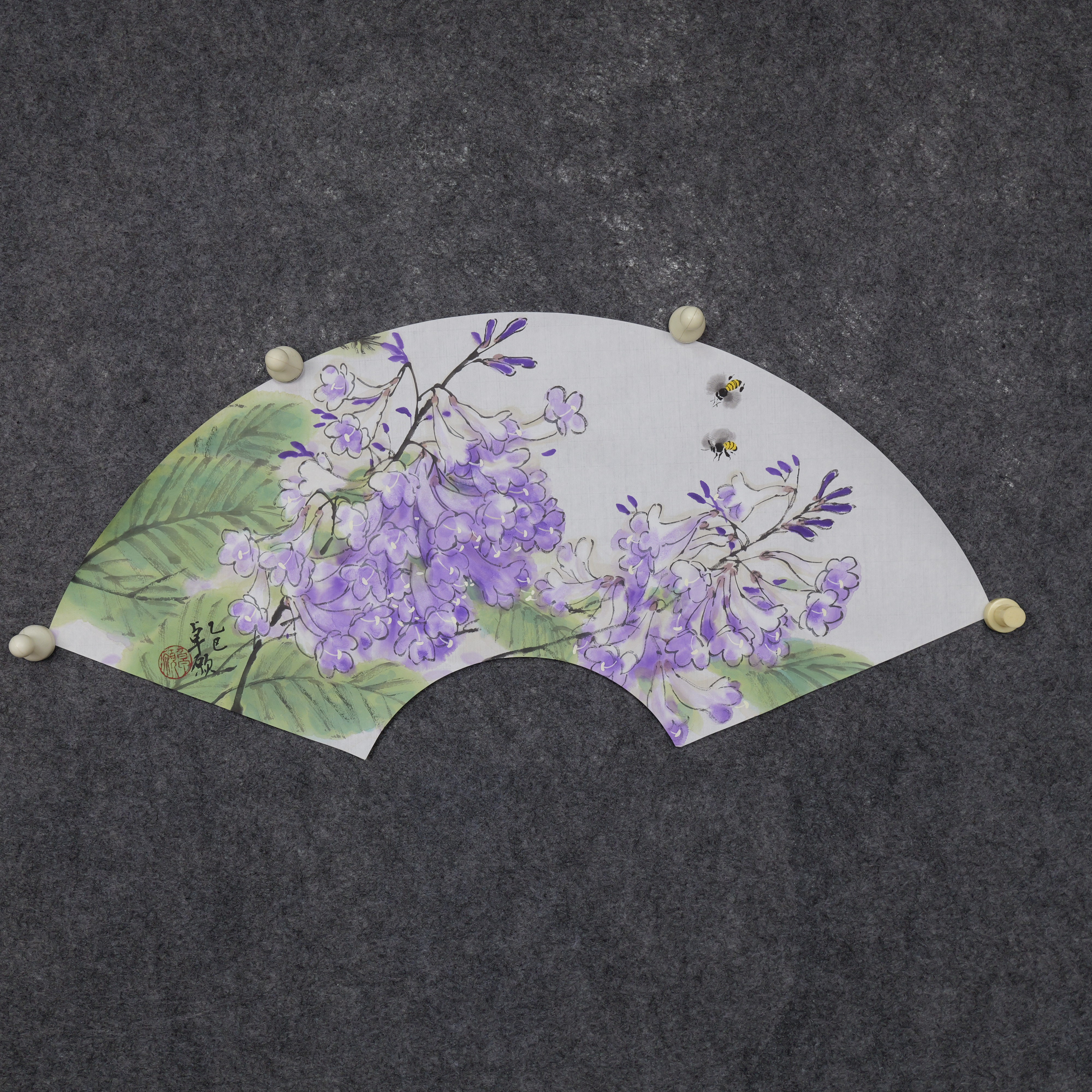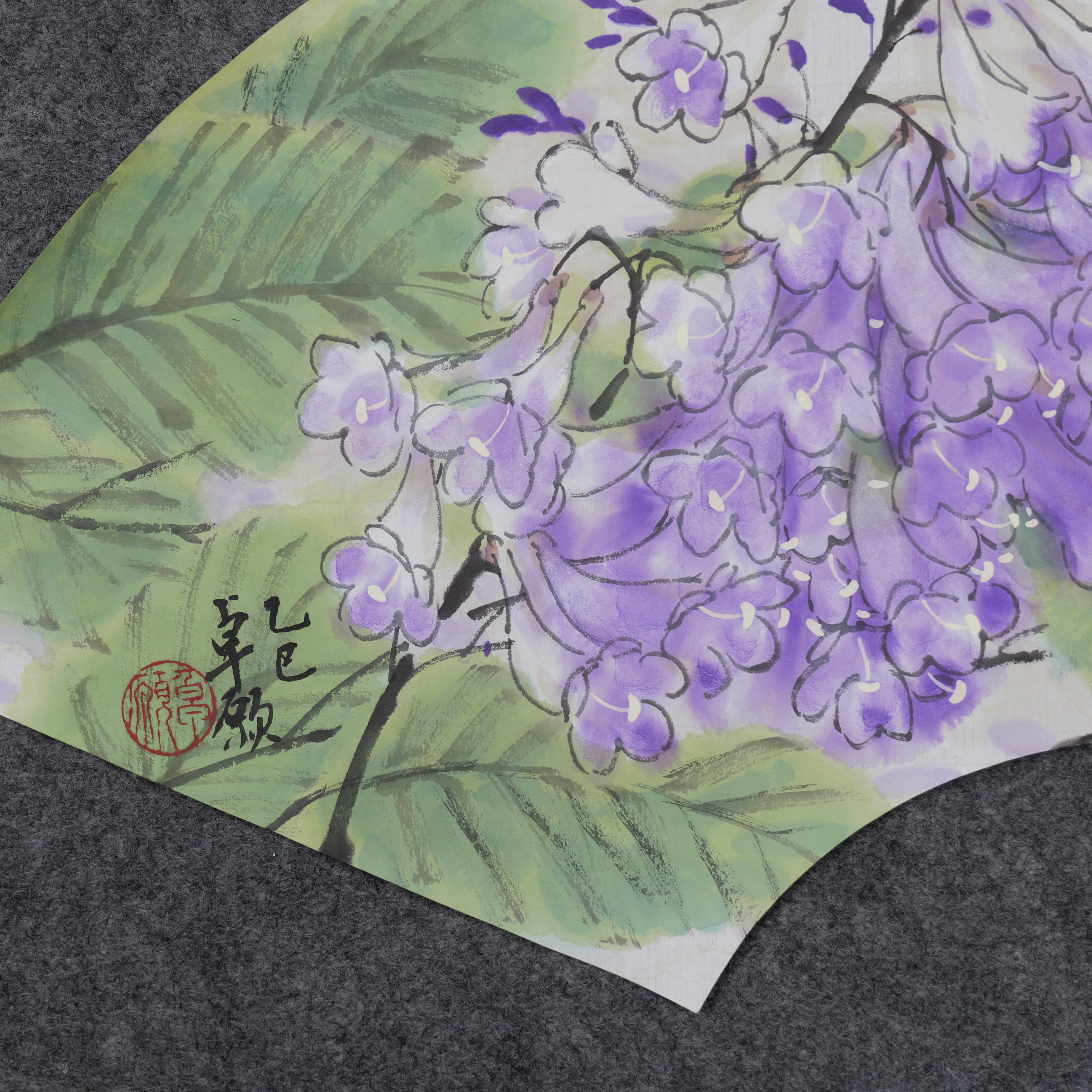 卓愿《紫风铃》33x66CM 手绘纸本宣纸国画作品