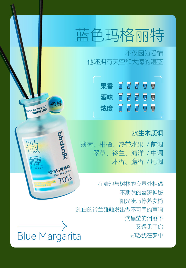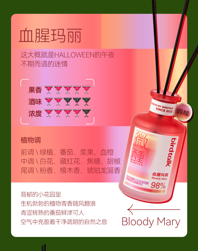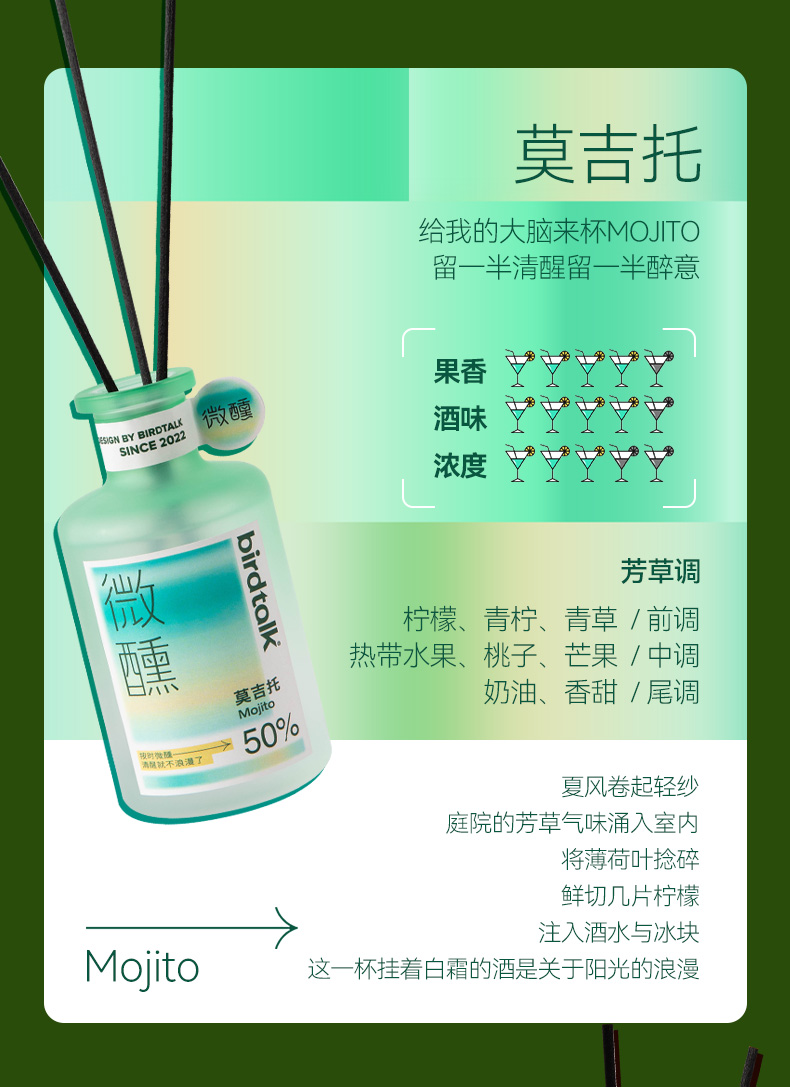 birdtalk-微醺系列无火香薰-莫吉托、龙舌兰日出、蓝色玛格丽特、血腥玛丽150ml