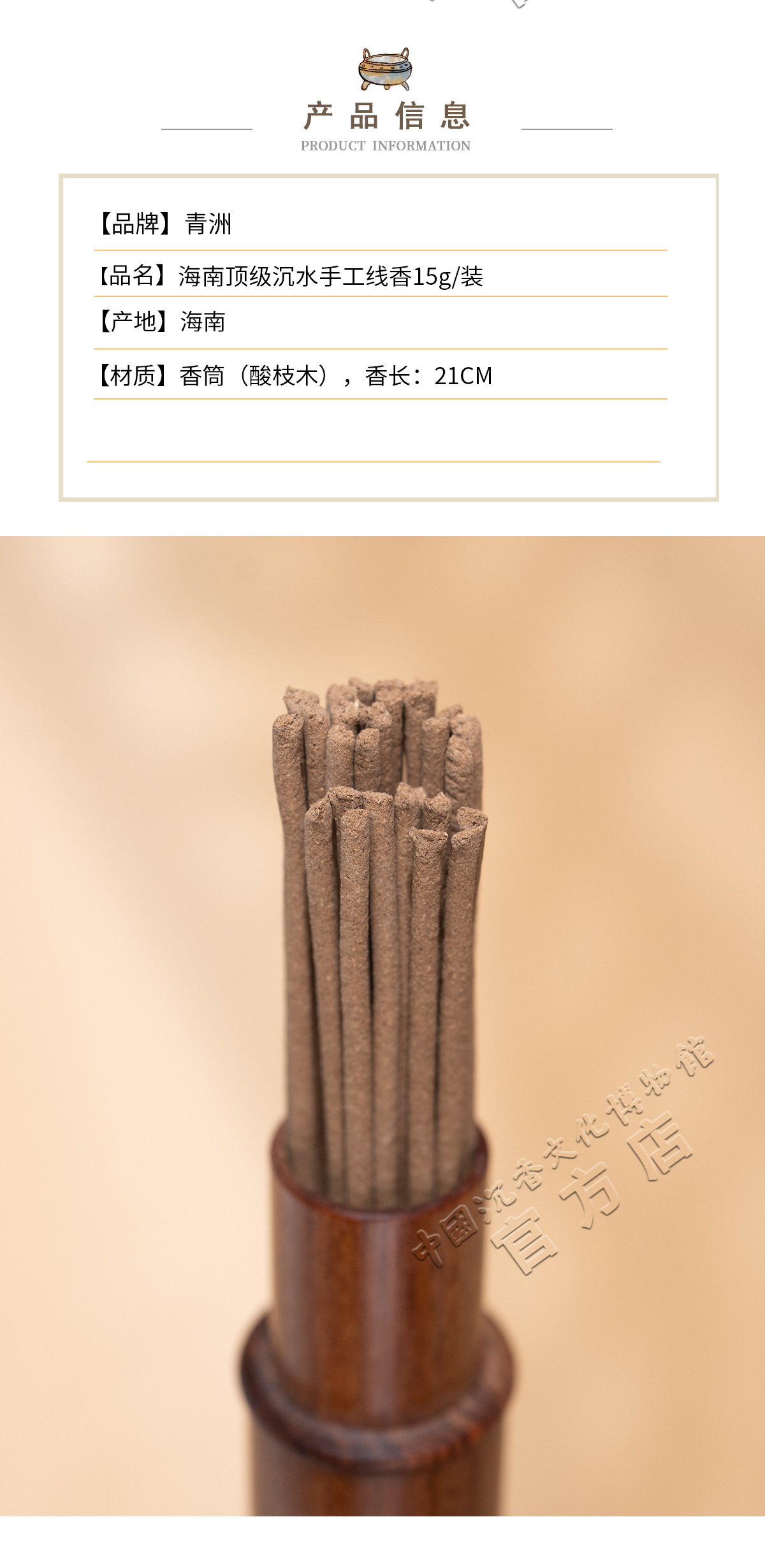 中国沉香文化博物馆 海南手工线香 15g