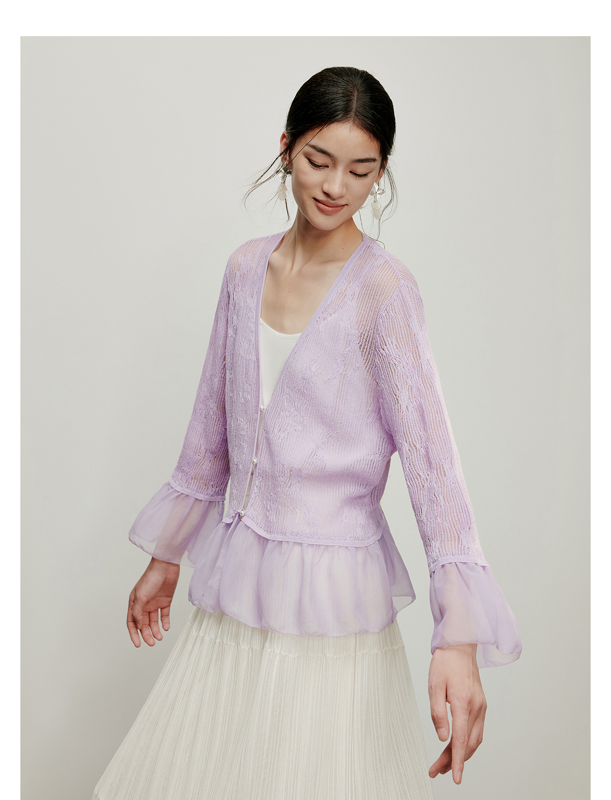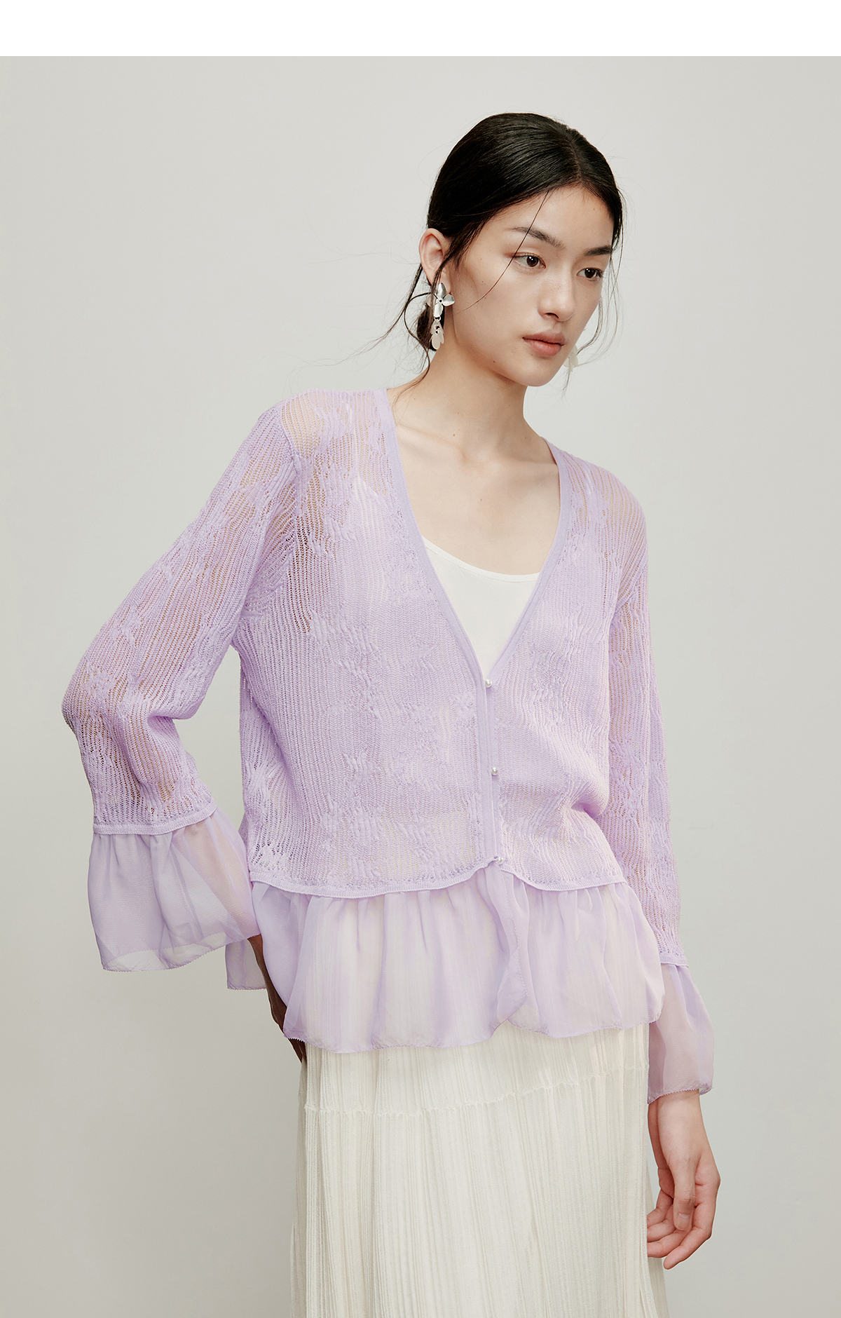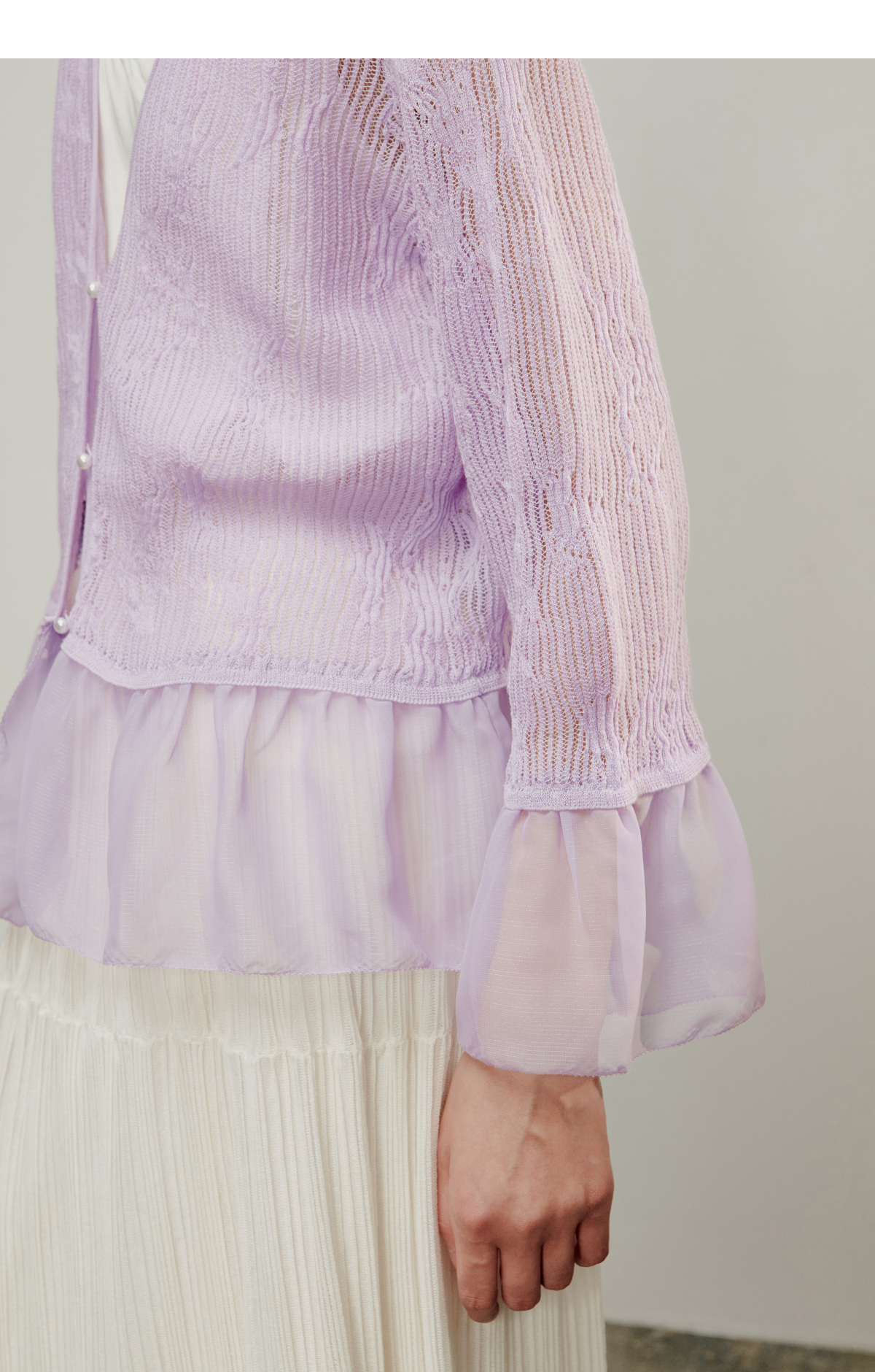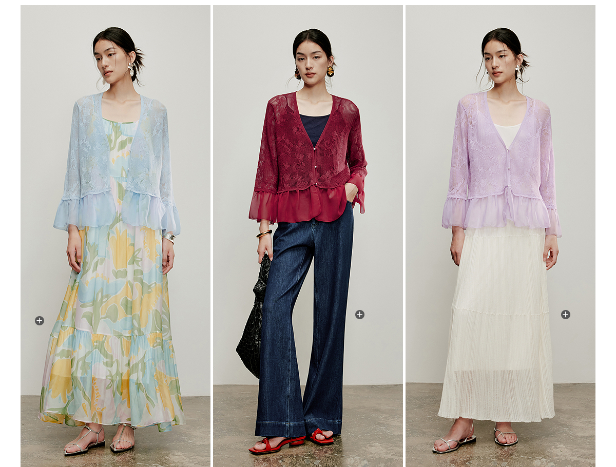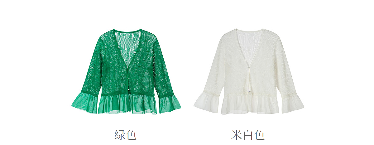 【林栖设计小店】流水潺潺|优雅多色镂空肌理拼荷叶边2026夏新款毛织外套1962172