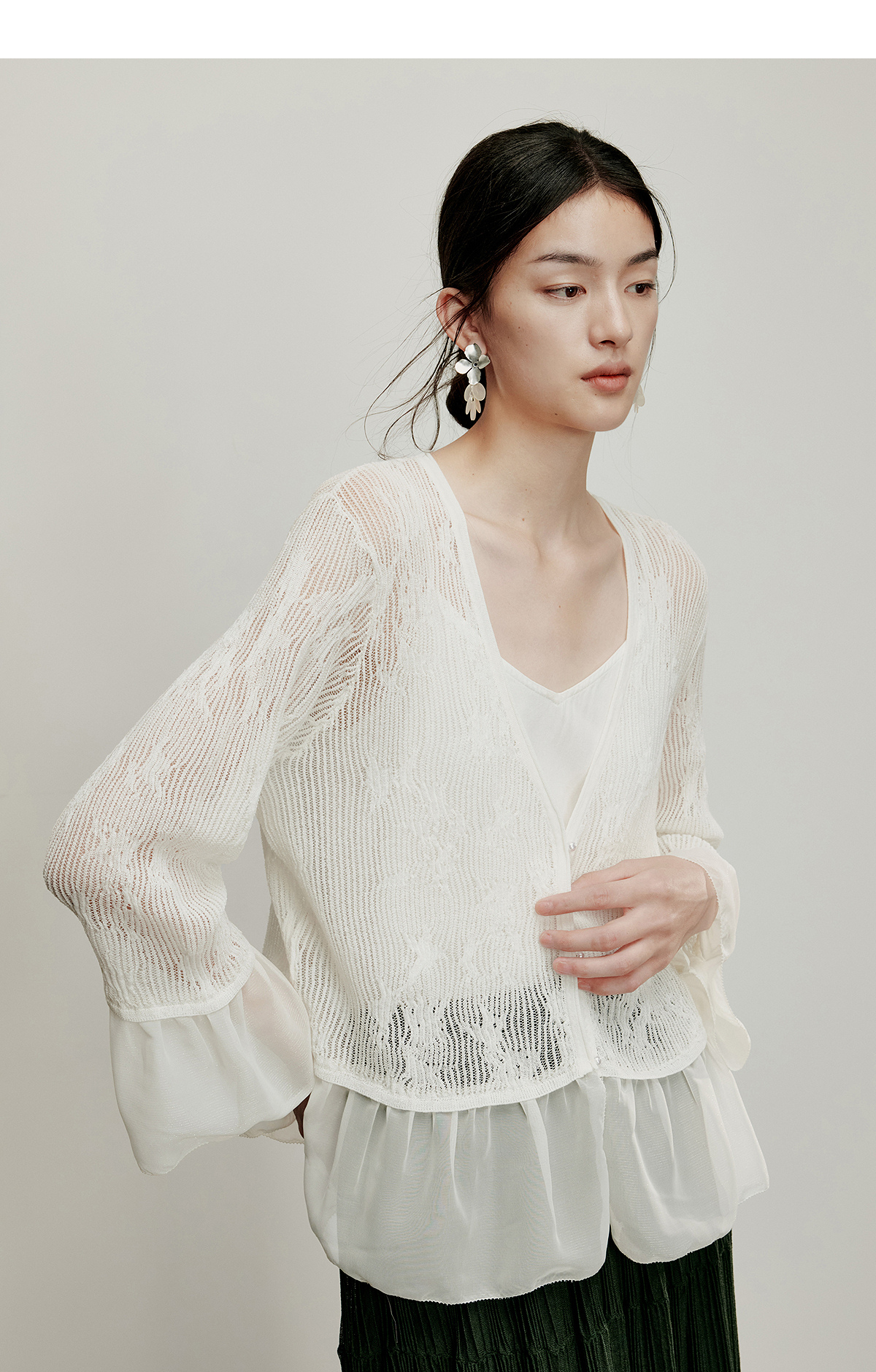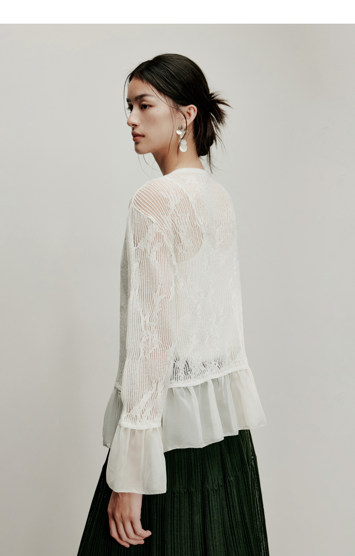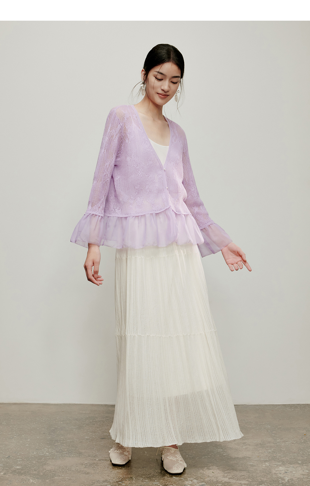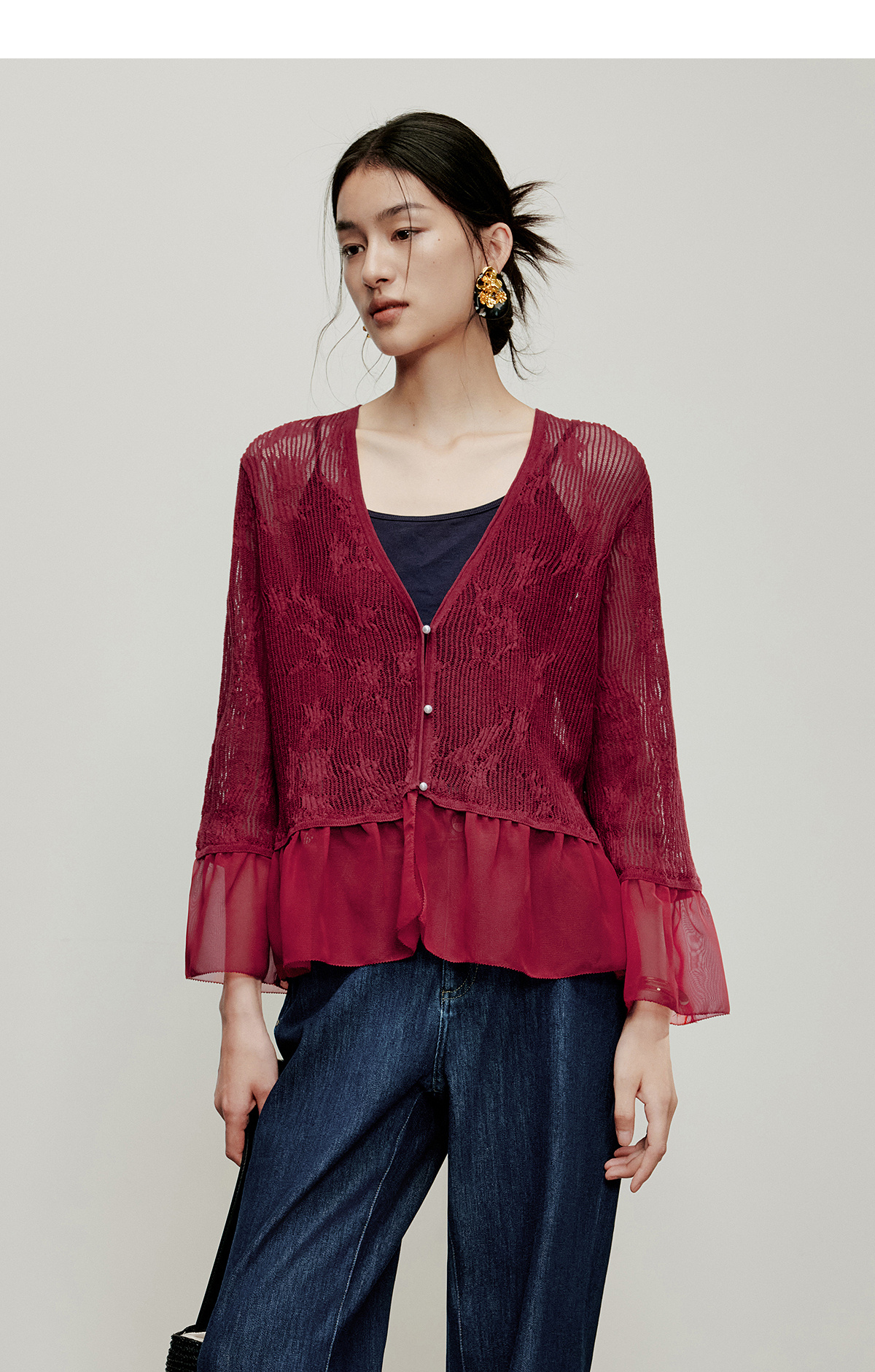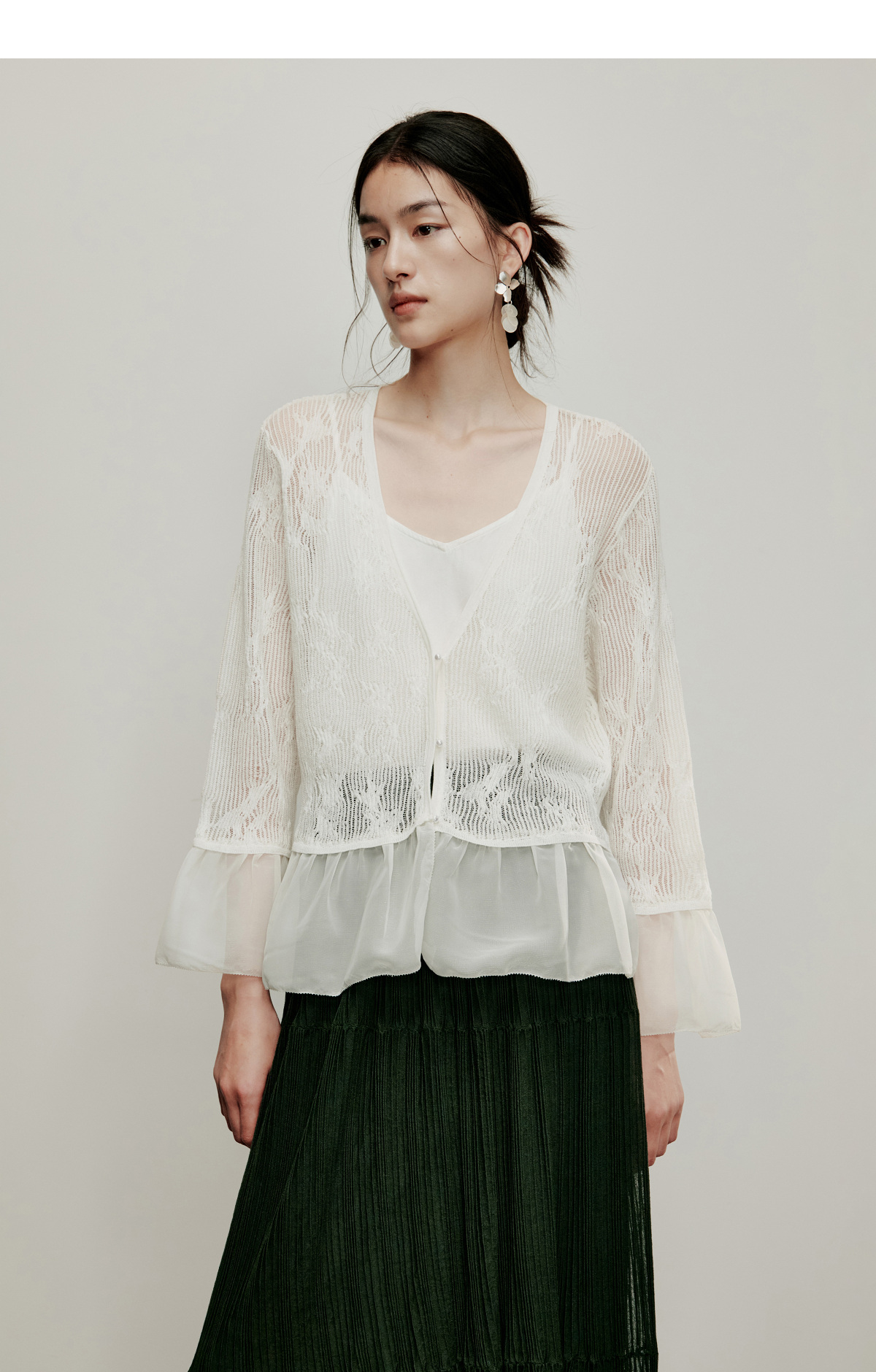 【林栖设计小店】流水潺潺|优雅多色镂空肌理拼荷叶边2026夏新款毛织外套1962172