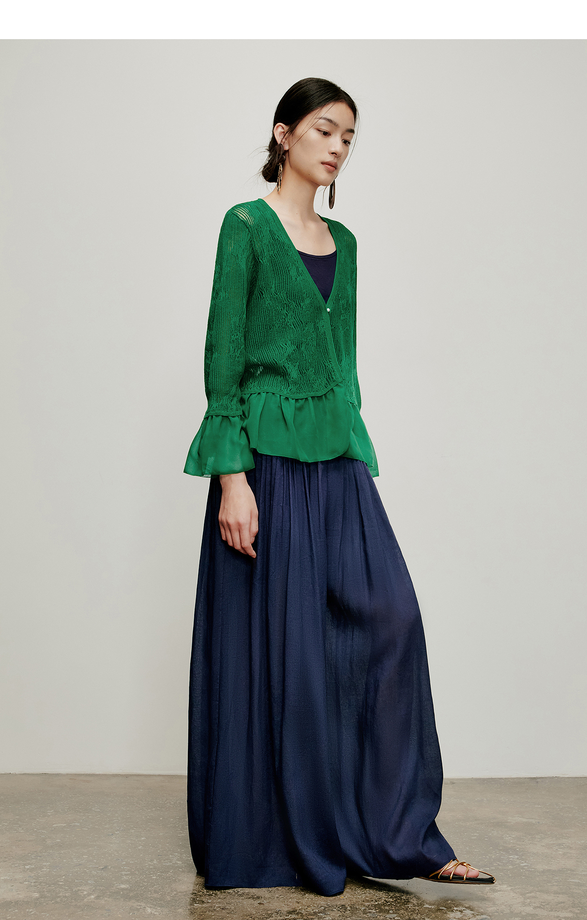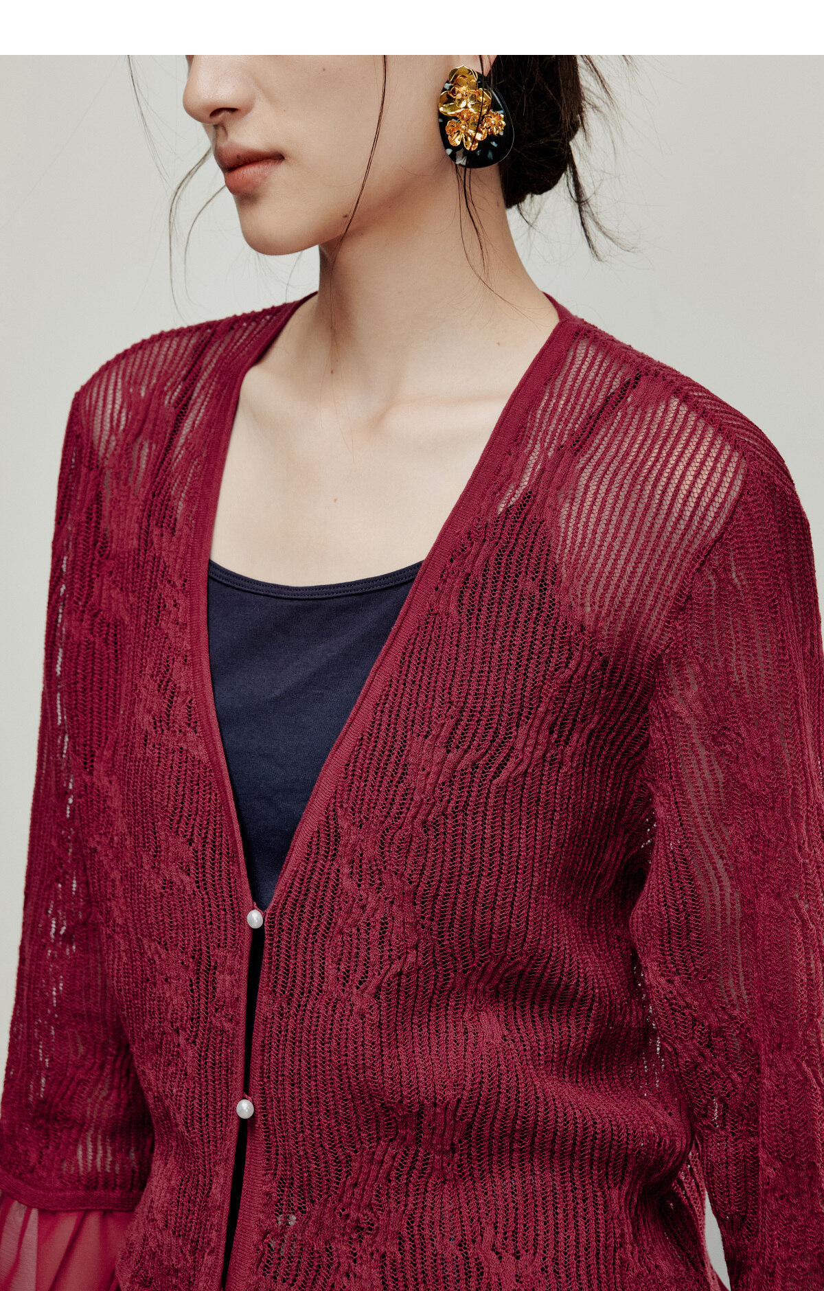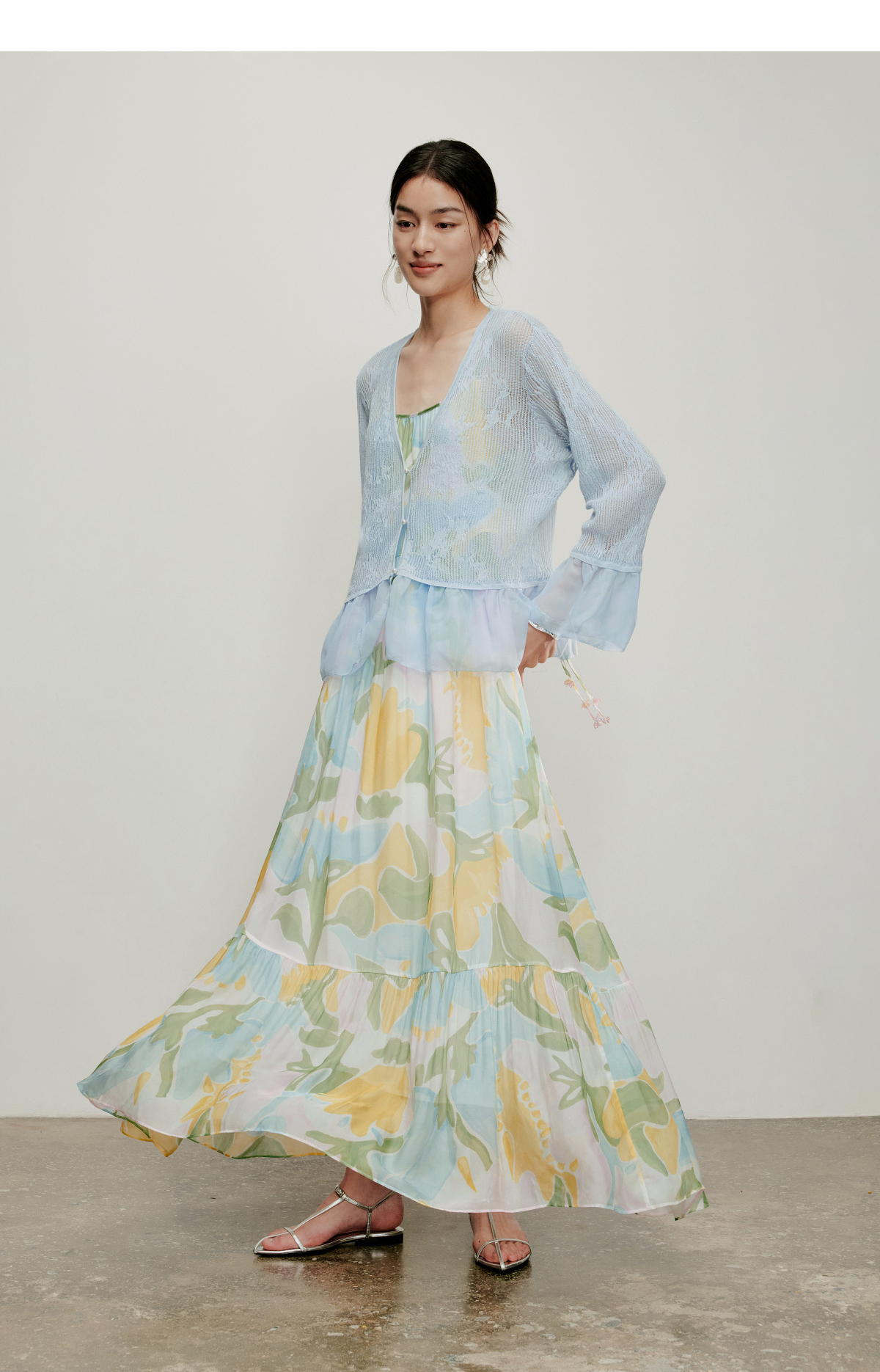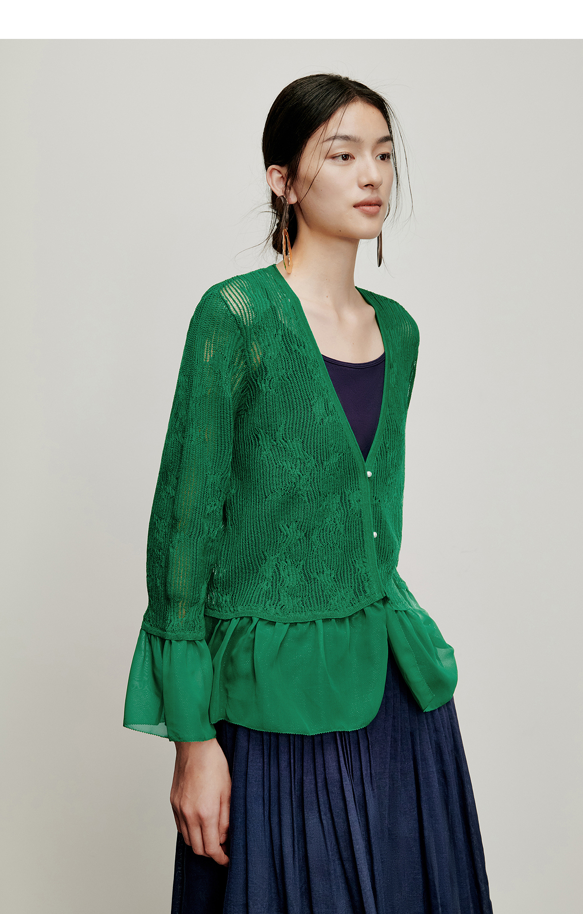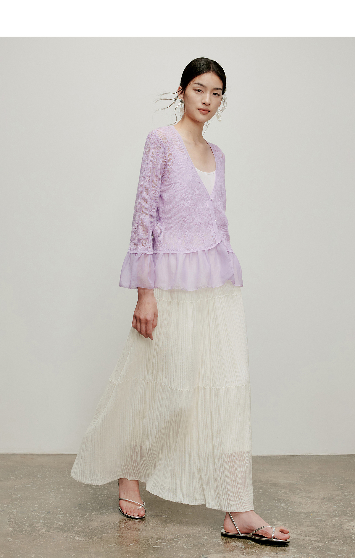 【林栖设计小店】流水潺潺|优雅多色镂空肌理拼荷叶边2026夏新款毛织外套1962172