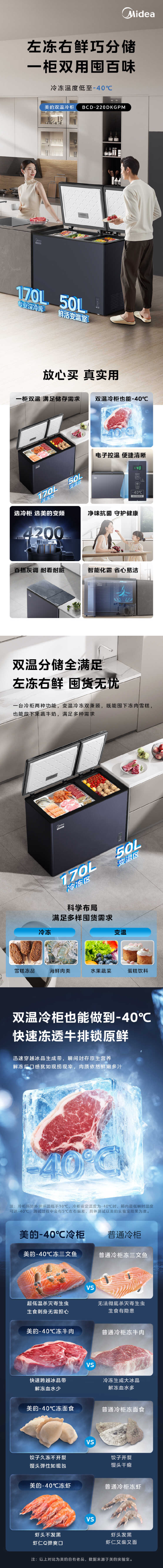 美的(203042)冷柜 BCD-220DKGPM 墨兰灰-观澜