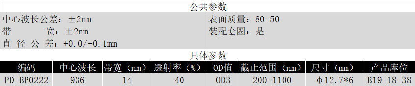 BP936/14K OD3@200-1100 T>40% Φ12.7*6 带通滤光片 (带套圈)