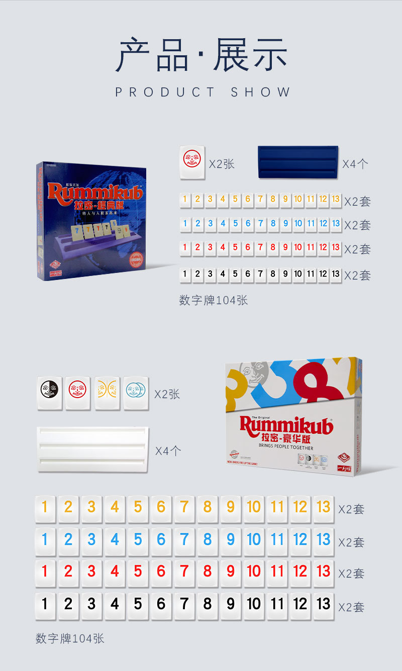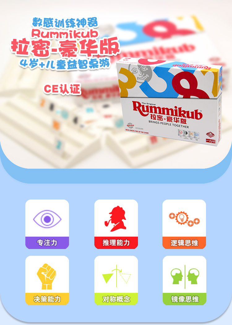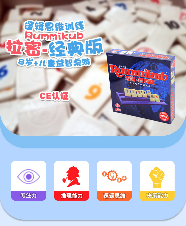 正版rummikub拉密桌游儿童7岁益智玩具以色列麻将拉密牌亲子游戏