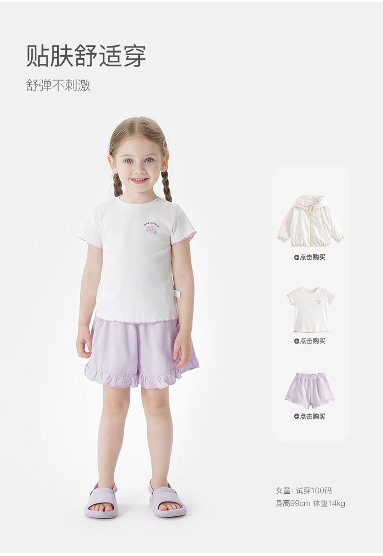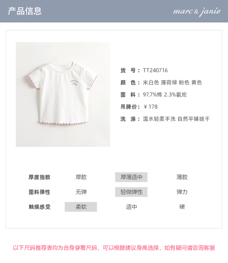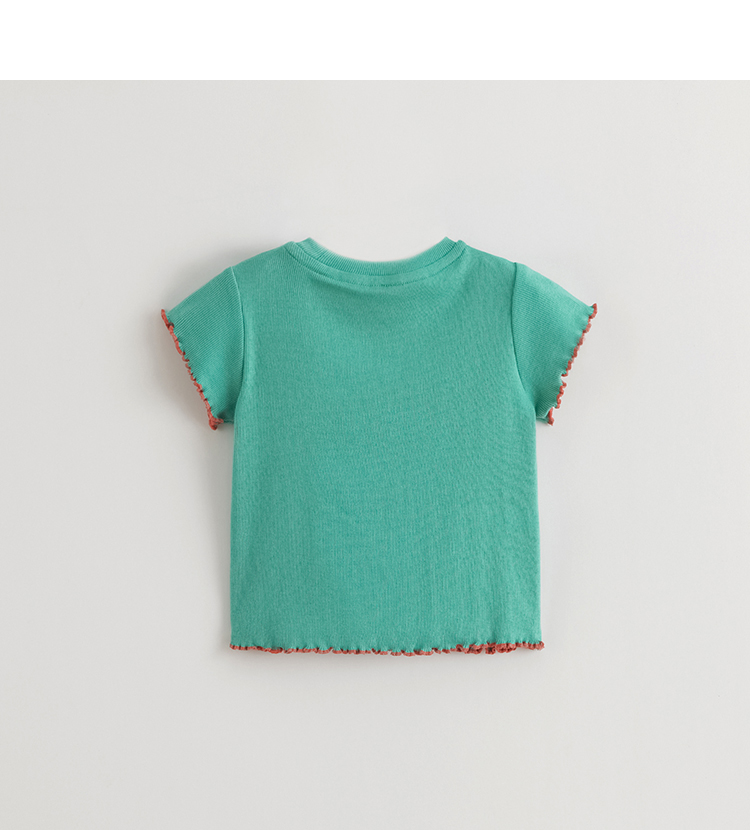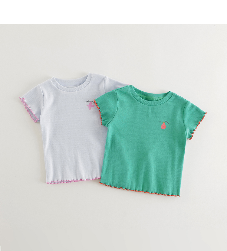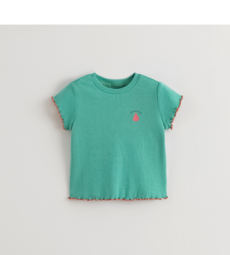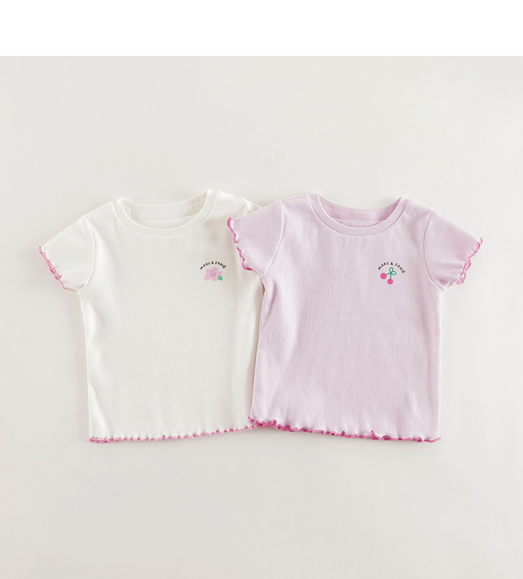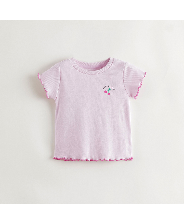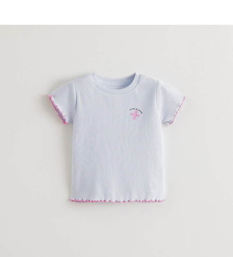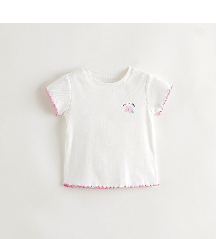 马克珍妮女童缤纷夏日花边弹力短袖T恤儿童上衣夏装新款550902