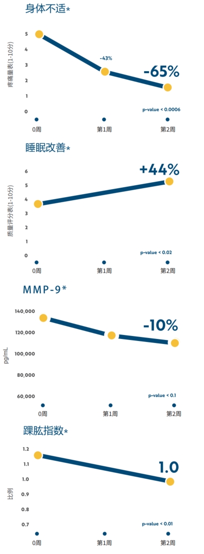 8周内疼痛减少65%*(p<0.0006)