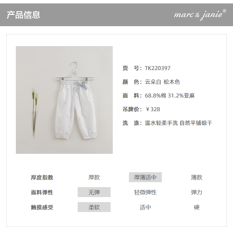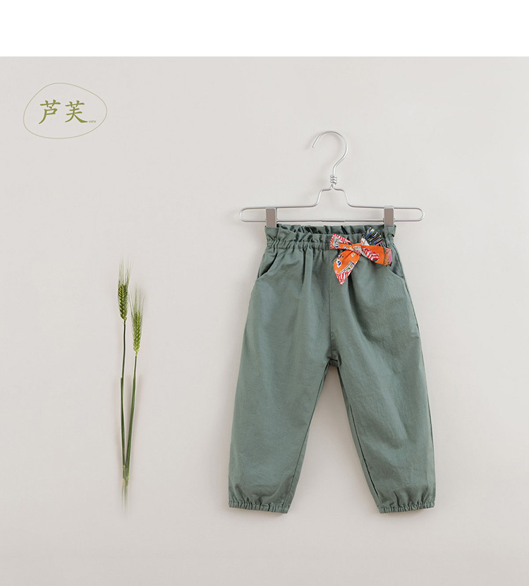 【马克珍妮 芦芙系列】夏装新款 女童舒适棉麻萝卜裤220397