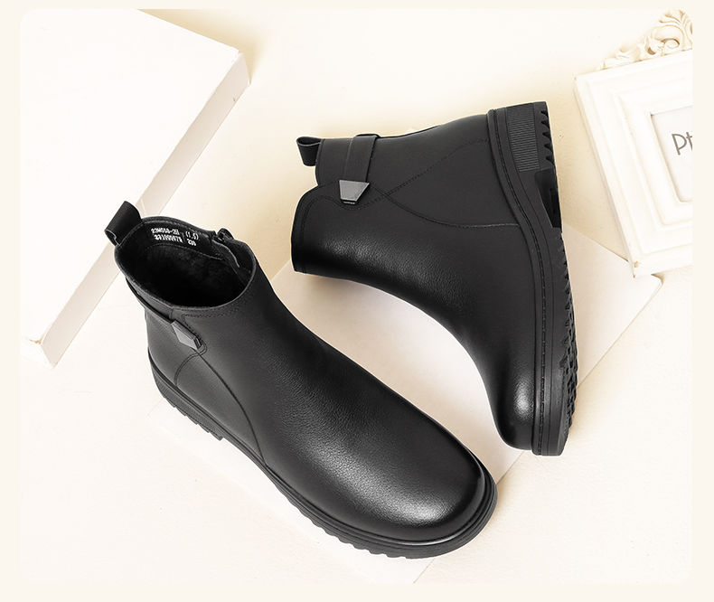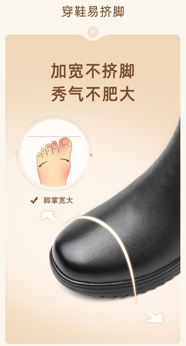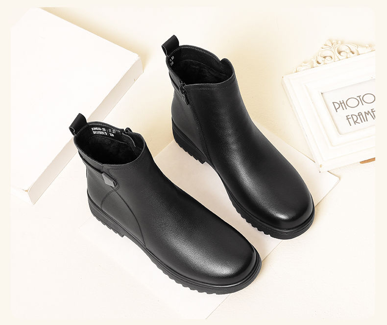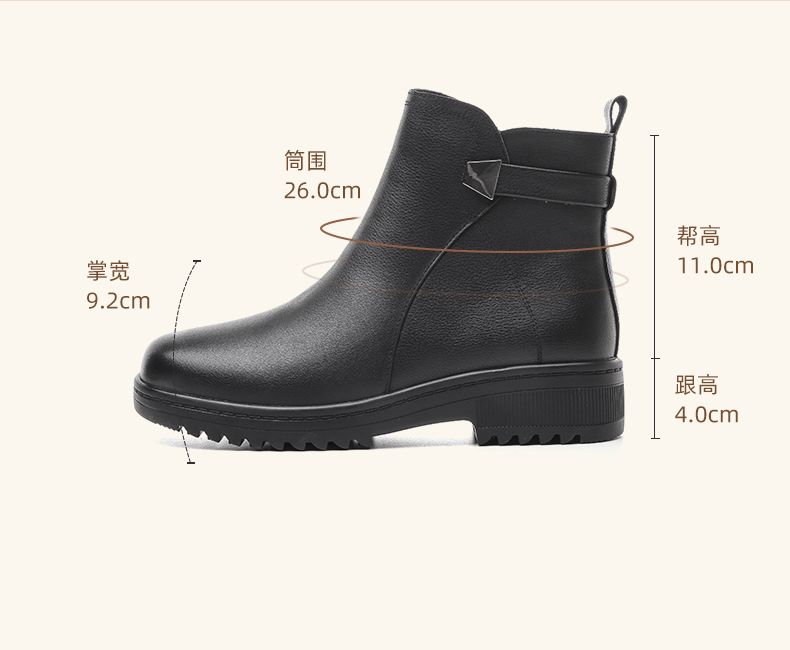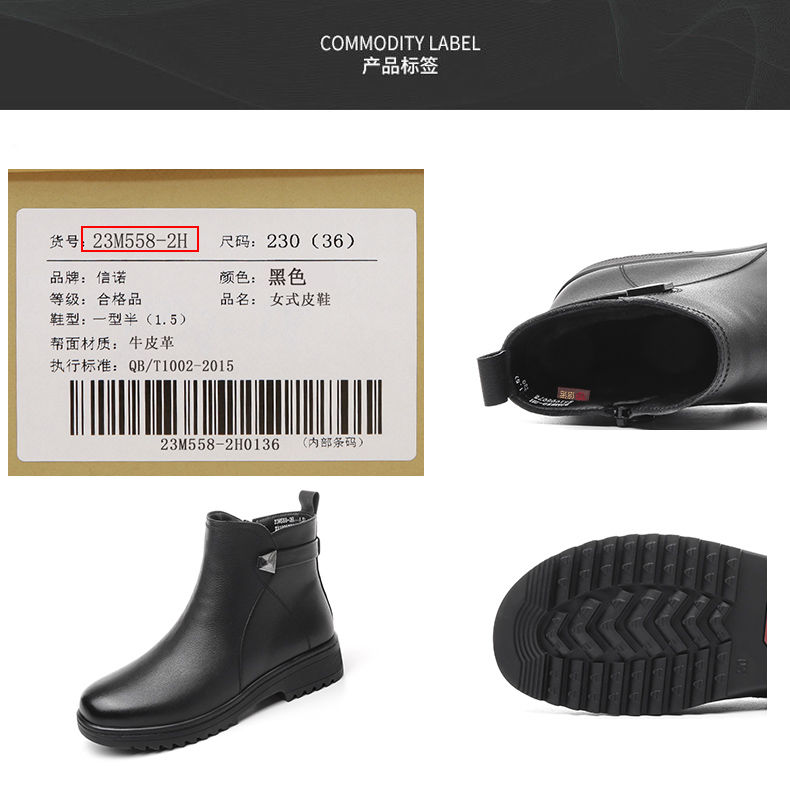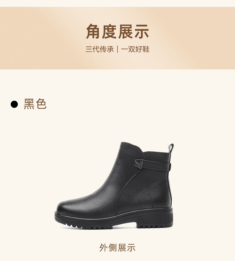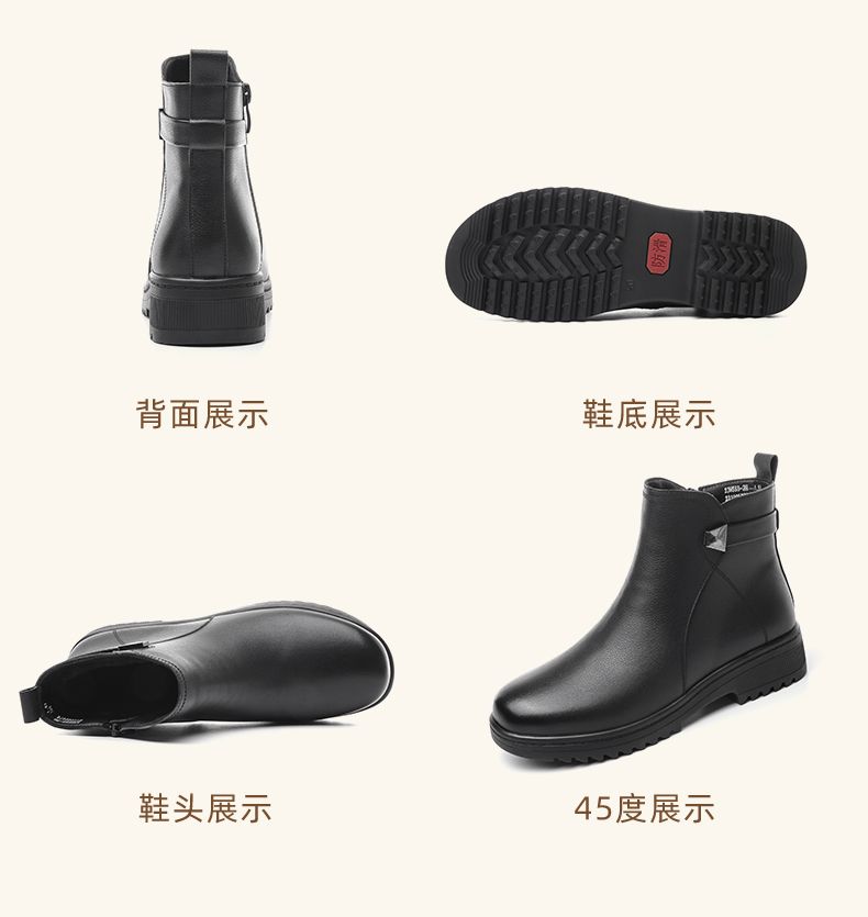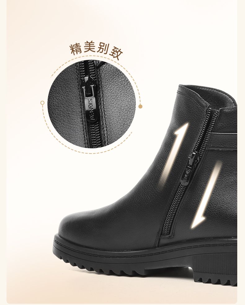 信诺妈妈棉鞋2023新款冬季真皮舒适加绒保暖靴子加厚中老年女短靴23M558-2H