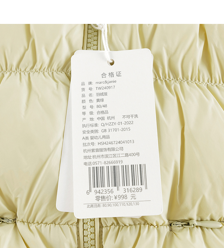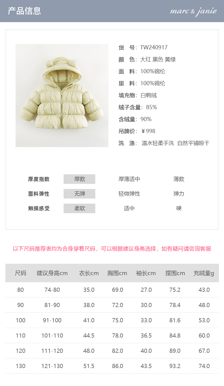 【三防】马克珍妮女童小耳朵超轻保暖羽绒服儿童冬装新款240917
