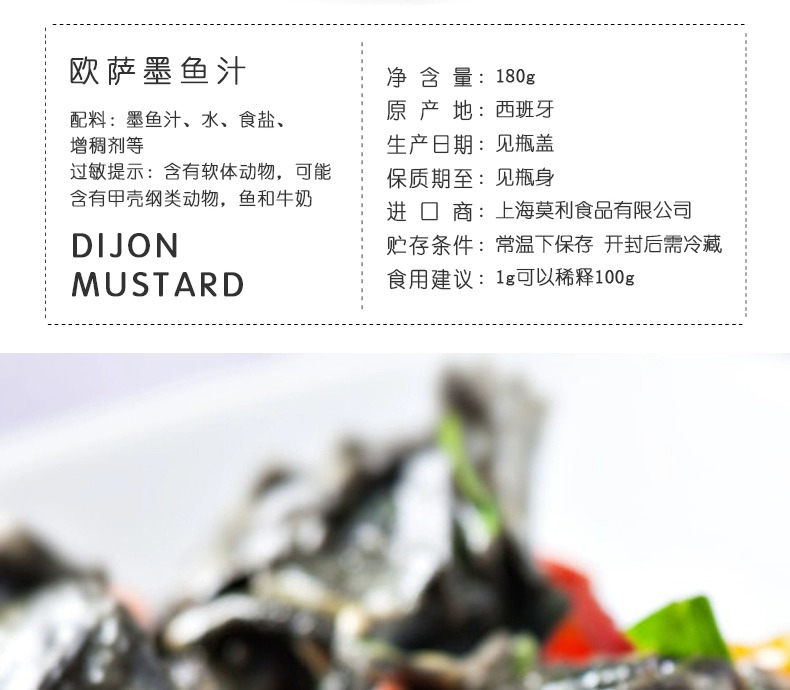 【中欧班列精选】西班牙欧萨墨鱼汁 原装进口意大利面酱食用意粉酱寿司墨鱼汁 180g/瓶