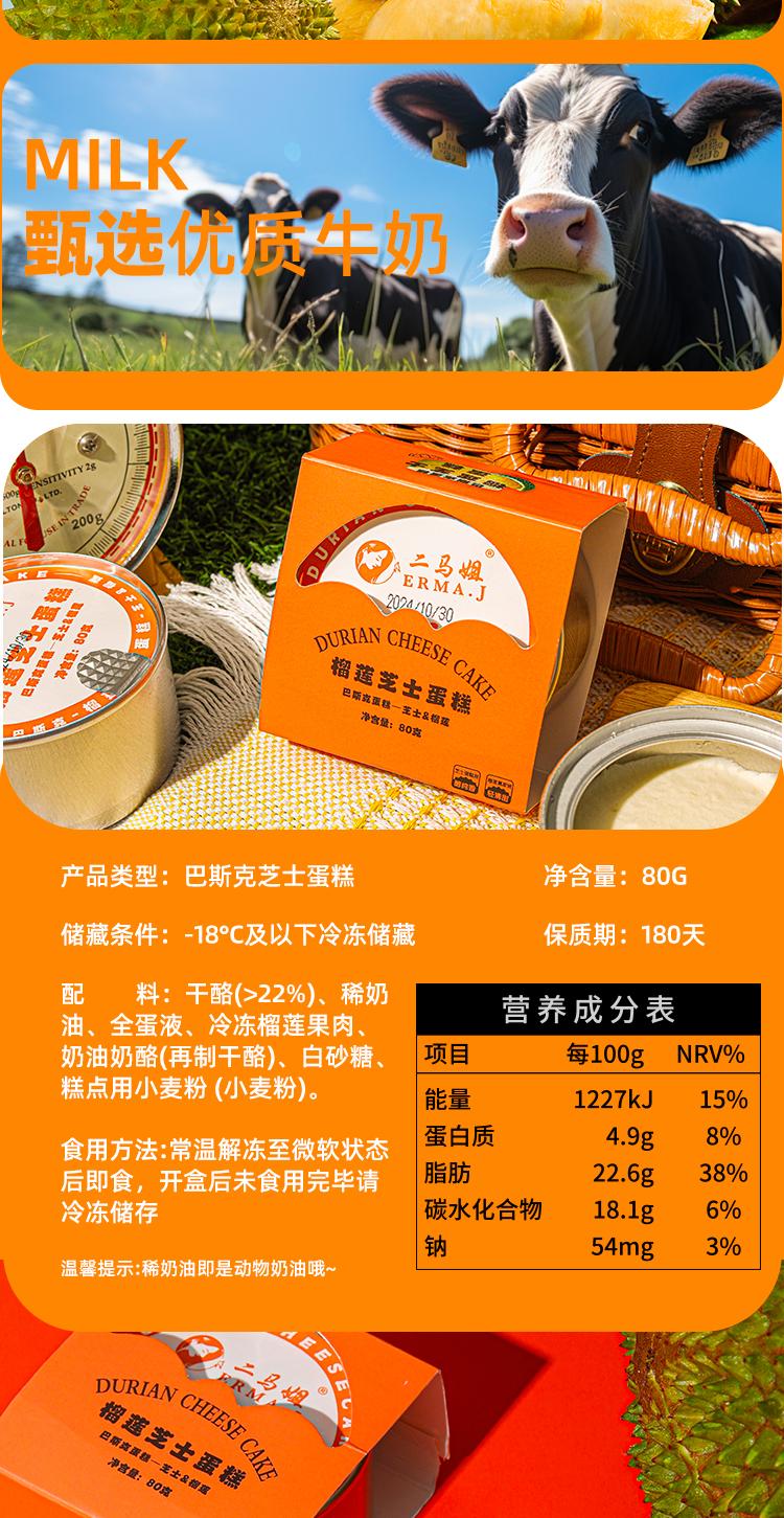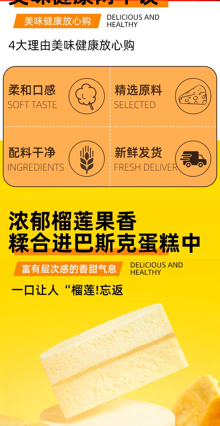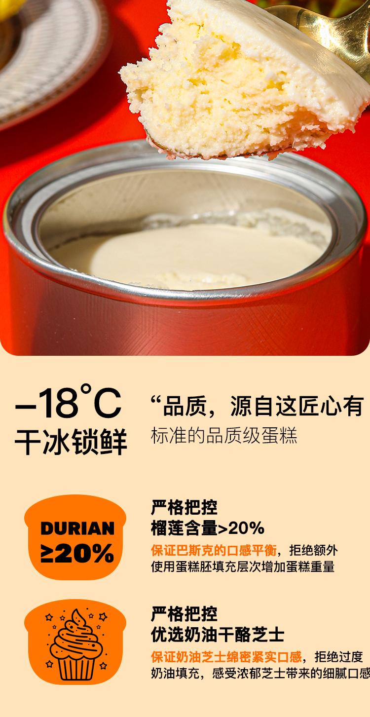 【榴莲芝士巴斯克蛋糕】马来西亚猫山王榴莲&芝士,果肉细腻醇甜,口感柔和绵密,下午茶的不二之选