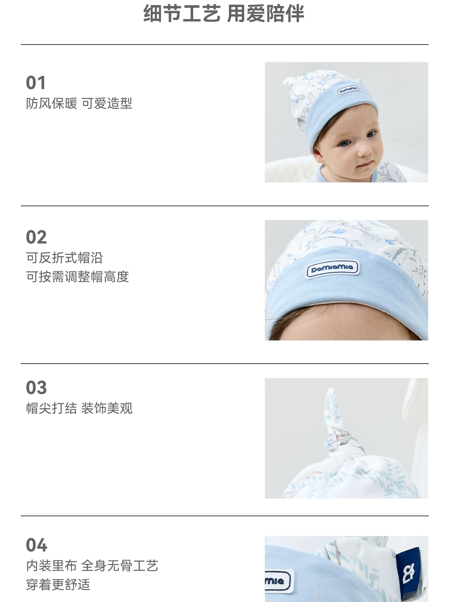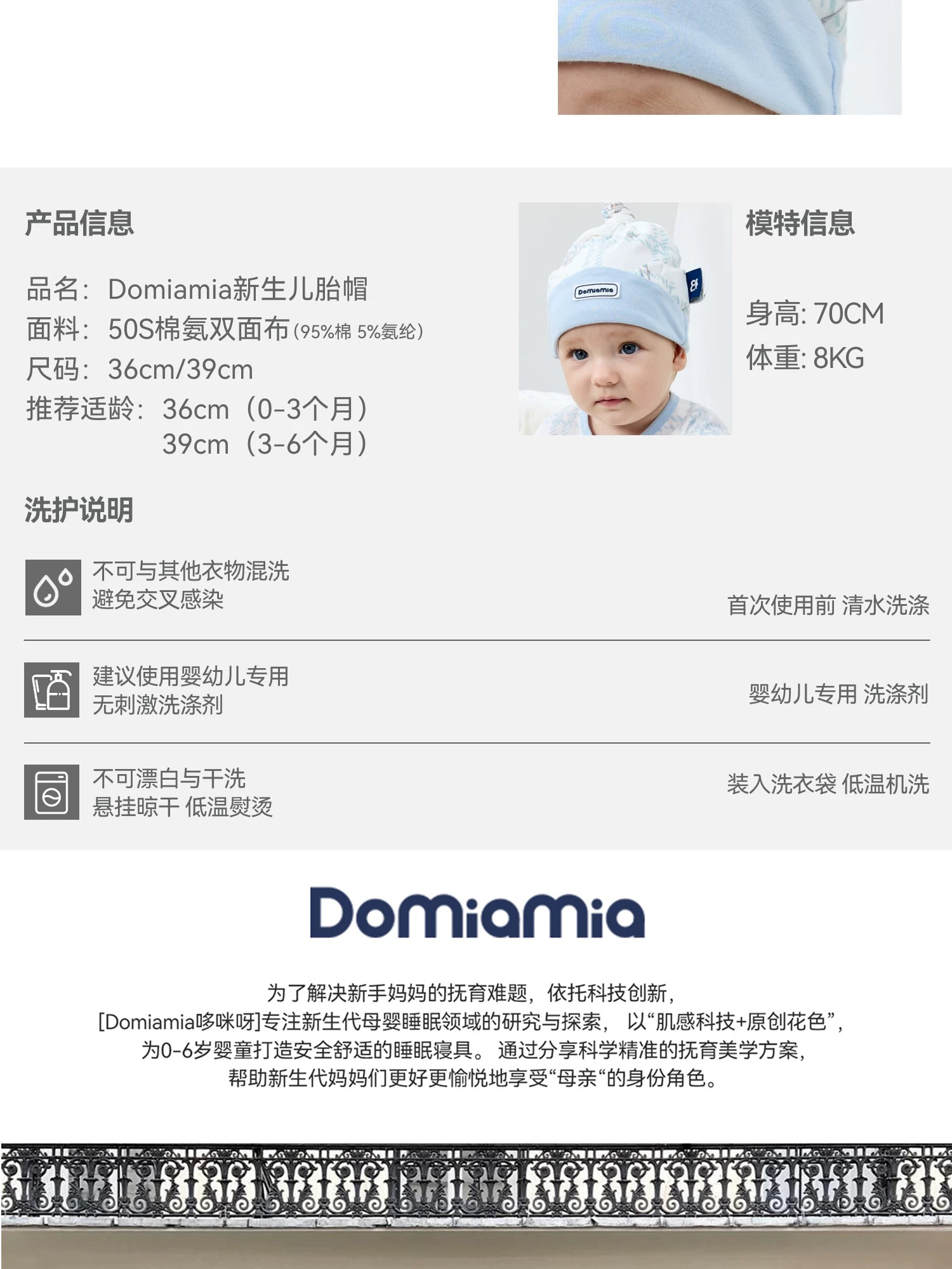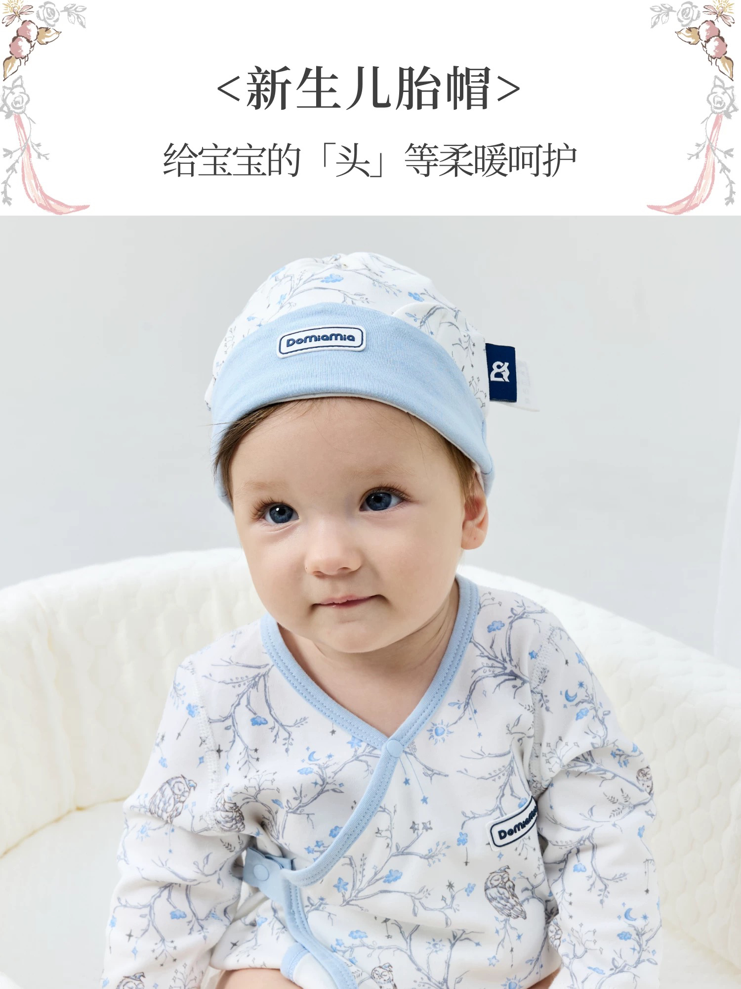 Domiamia 新生儿胎帽 0-6月初生宝宝满月百天拍照头饰帽子