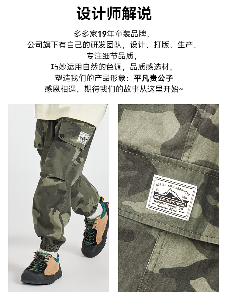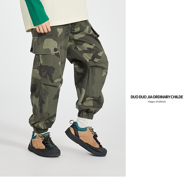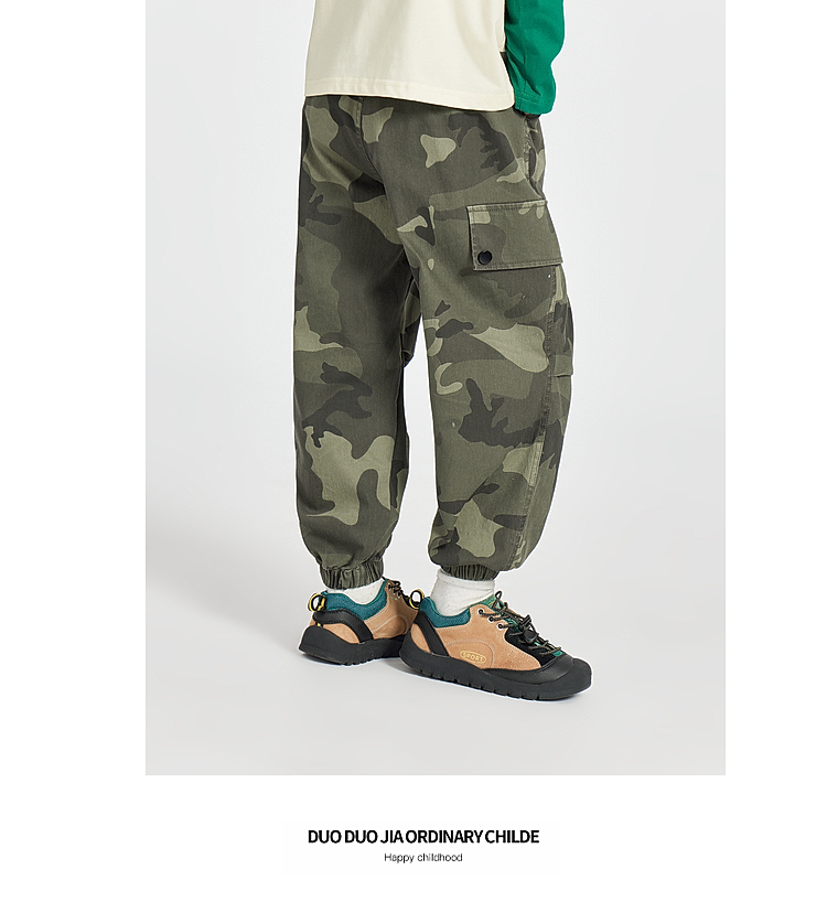 【团购价79.9】多多家男童迷彩工装裤2025春季新款儿童中大童男孩宽松休闲裤子潮10205