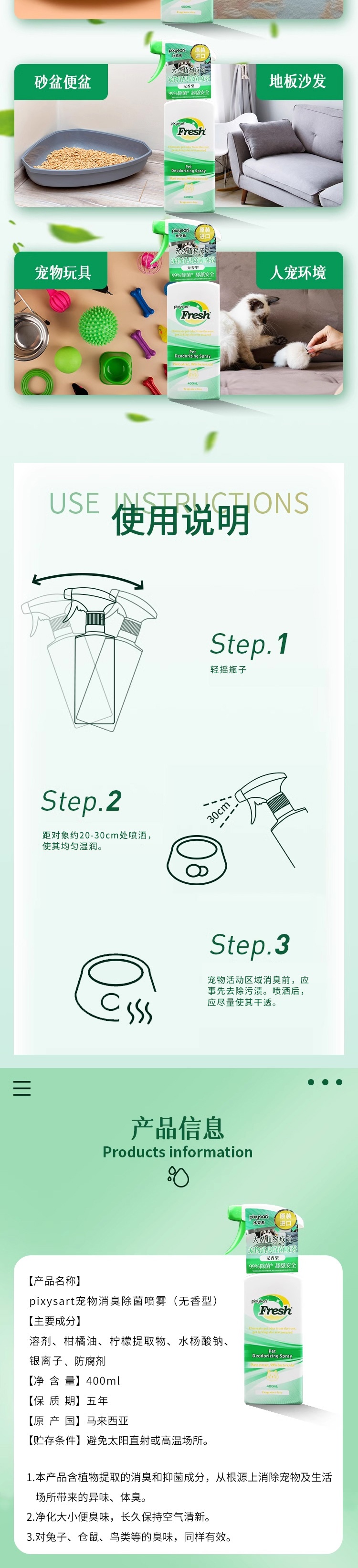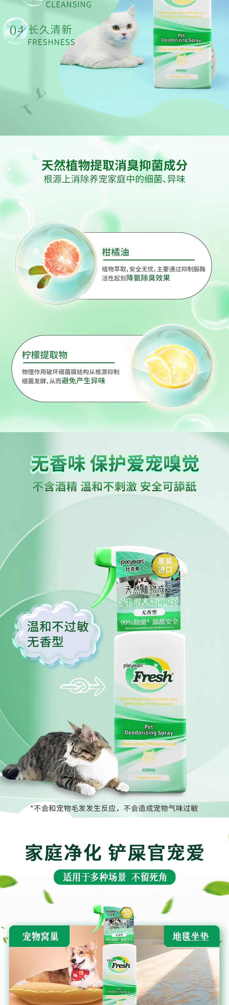 马来西亚进口pixysart宠物消臭除菌喷雾(无香型)400ml/瓶