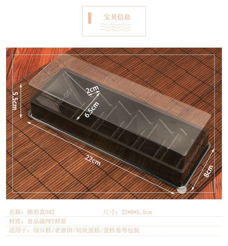 JTX-042 梯形吸塑盒50入 绿豆糕蛋糕卷寿司包装盒 吸塑西点包装盒