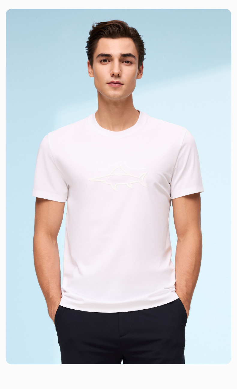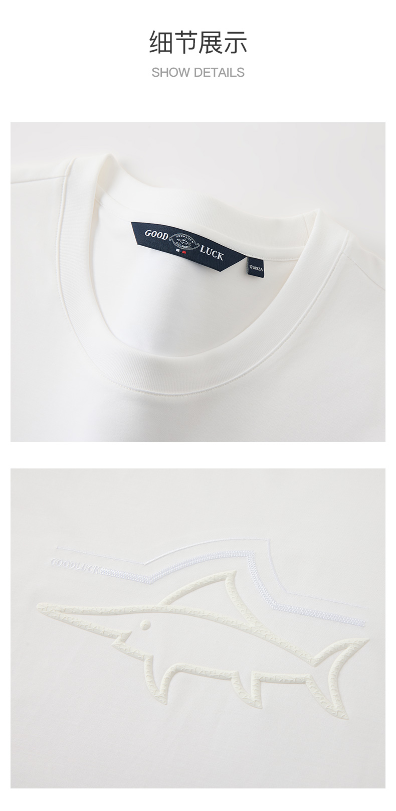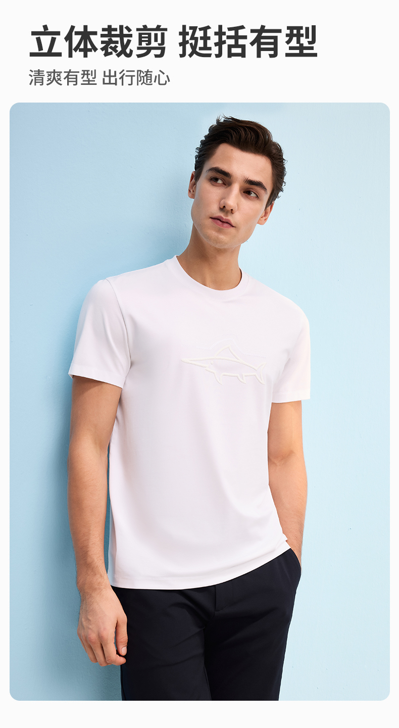 德鲨鲨鱼白色短袖圆领T恤男青年2026夏新款休闲百搭上衣男打底衫