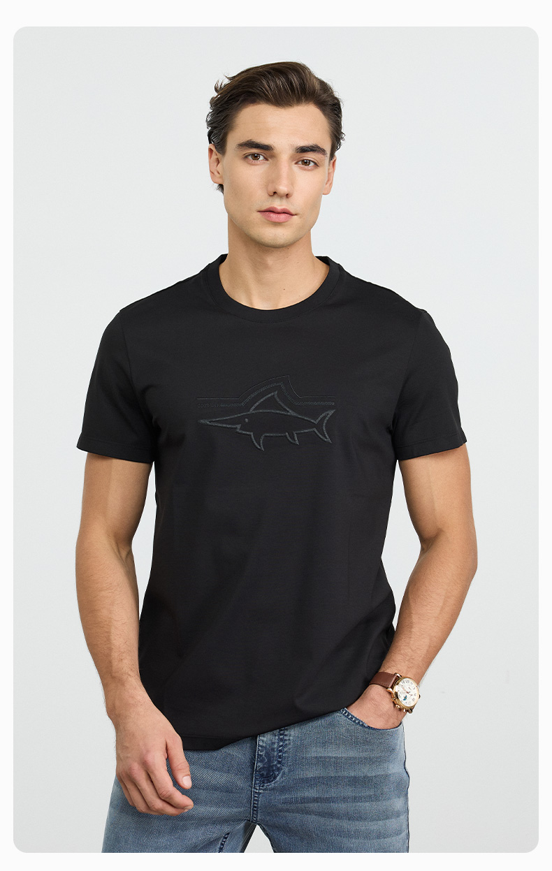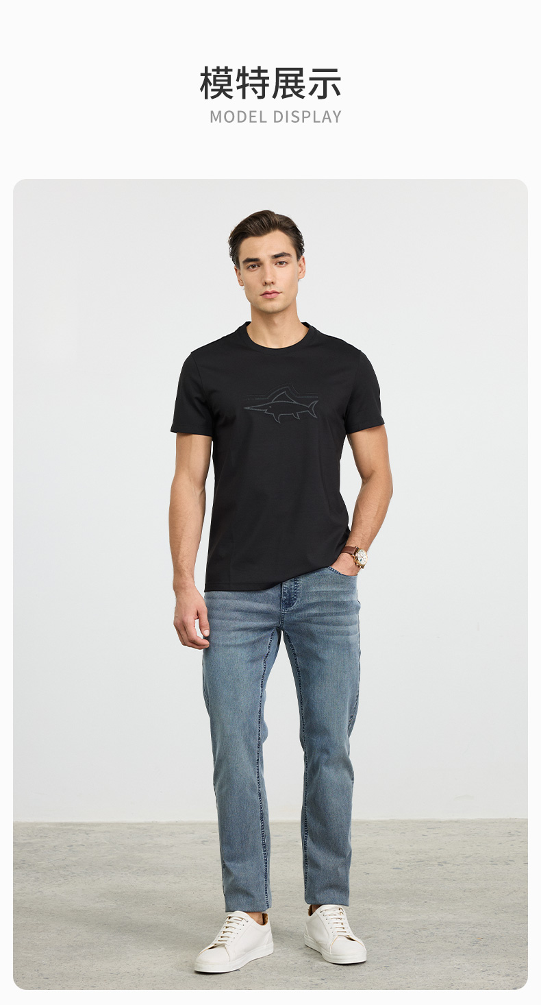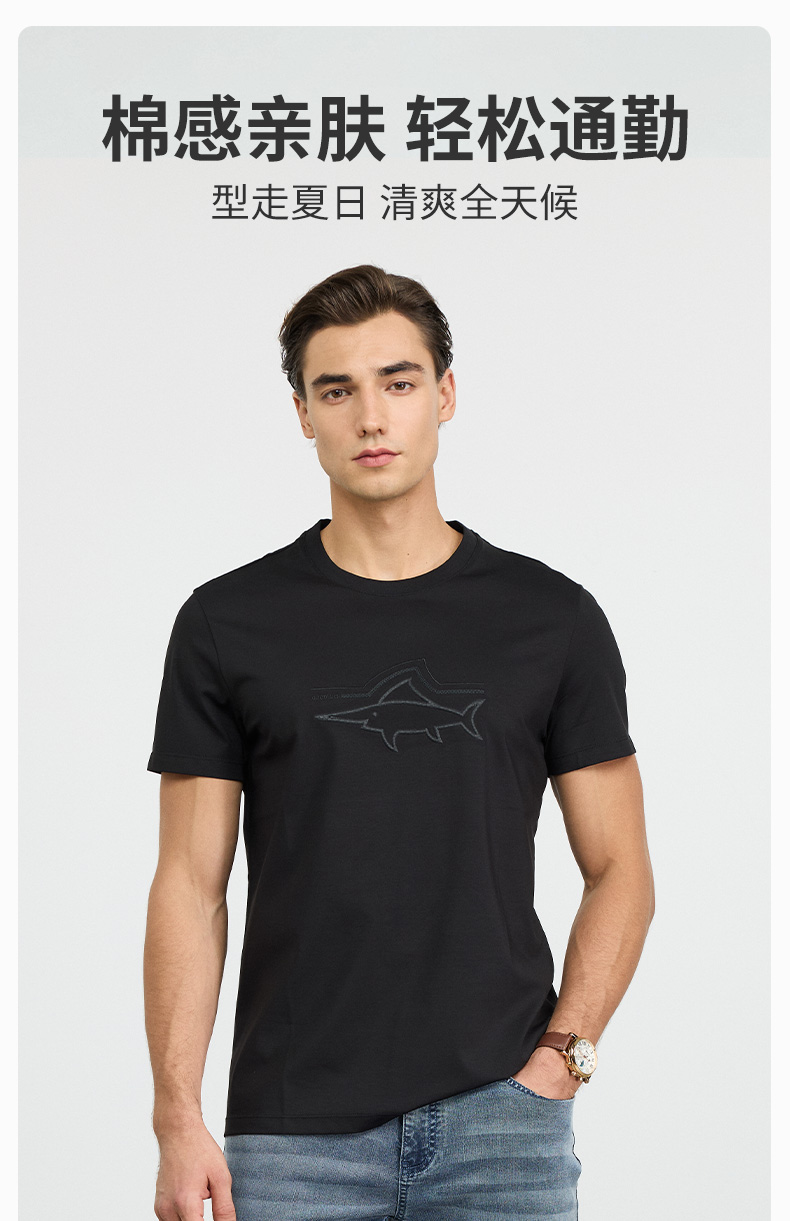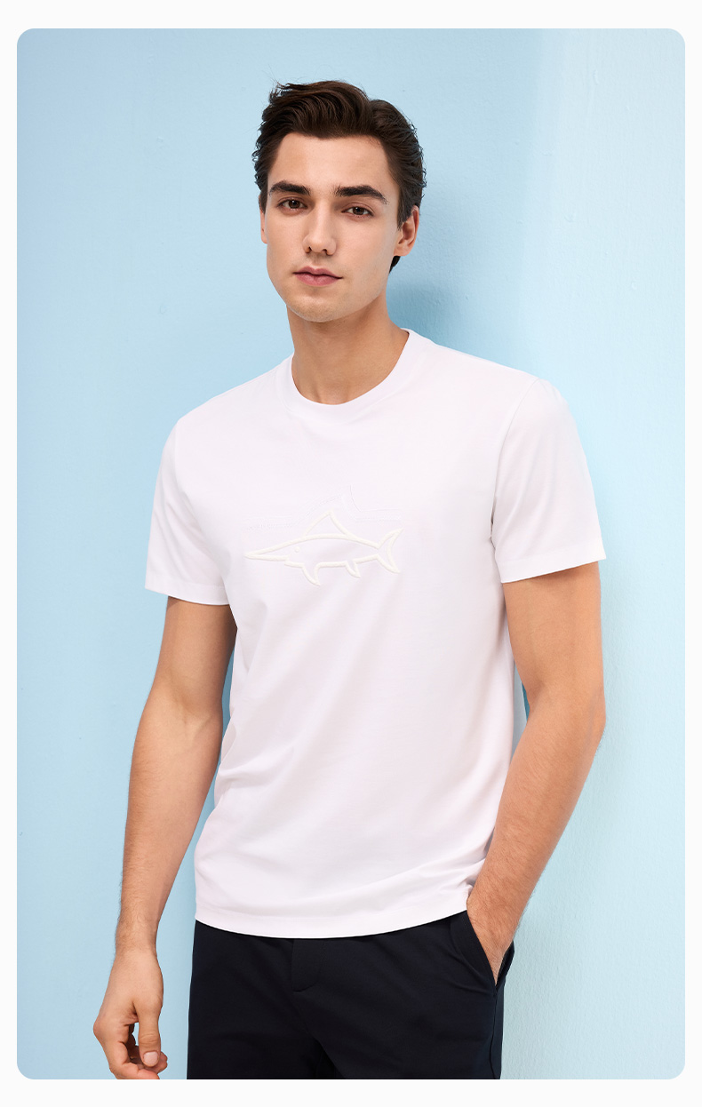德鲨鲨鱼白色短袖圆领T恤男青年2026夏新款休闲百搭上衣男打底衫