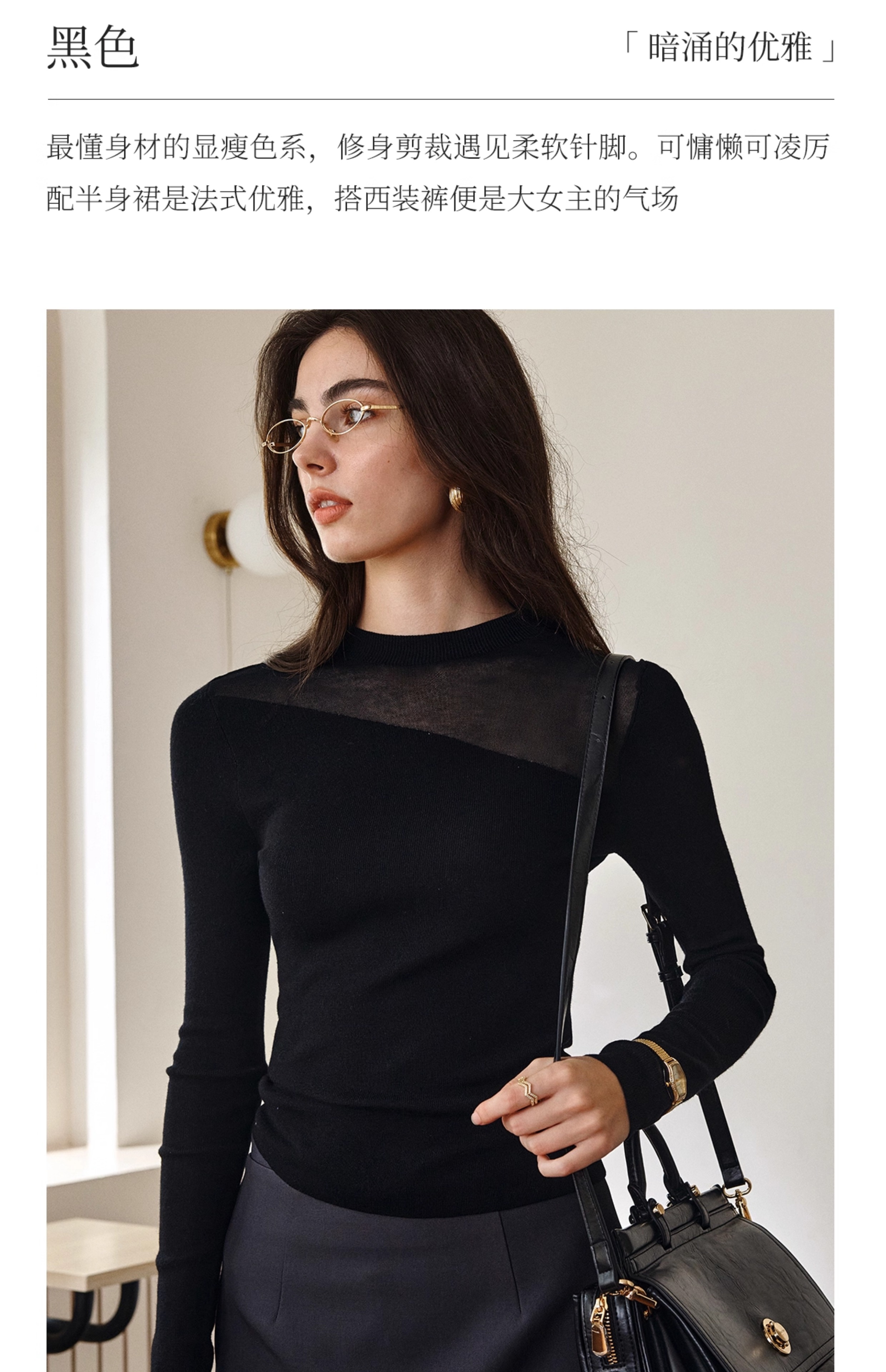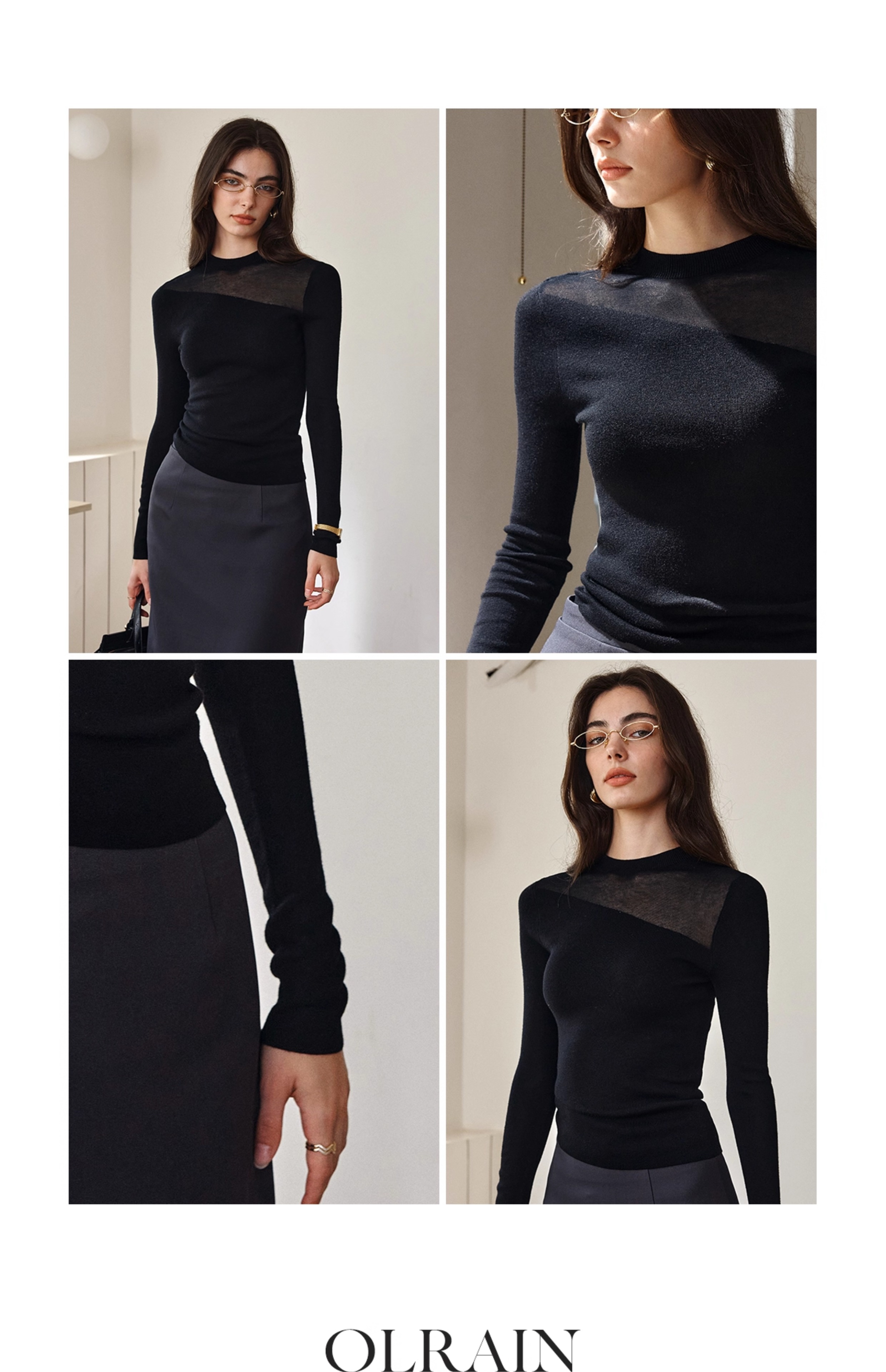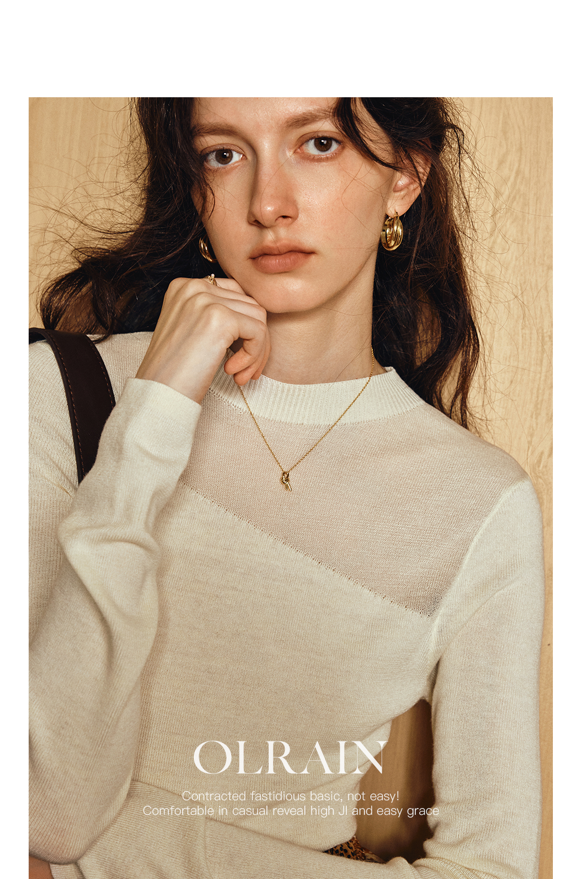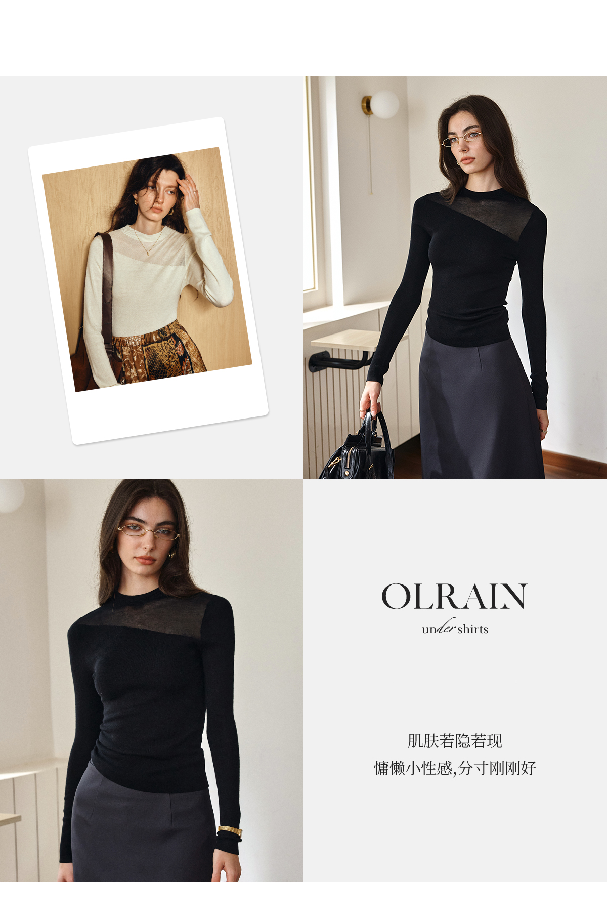 OLrain欧芮儿秋季2025新款简约通勤半透视设计感针织衫修身上衣女